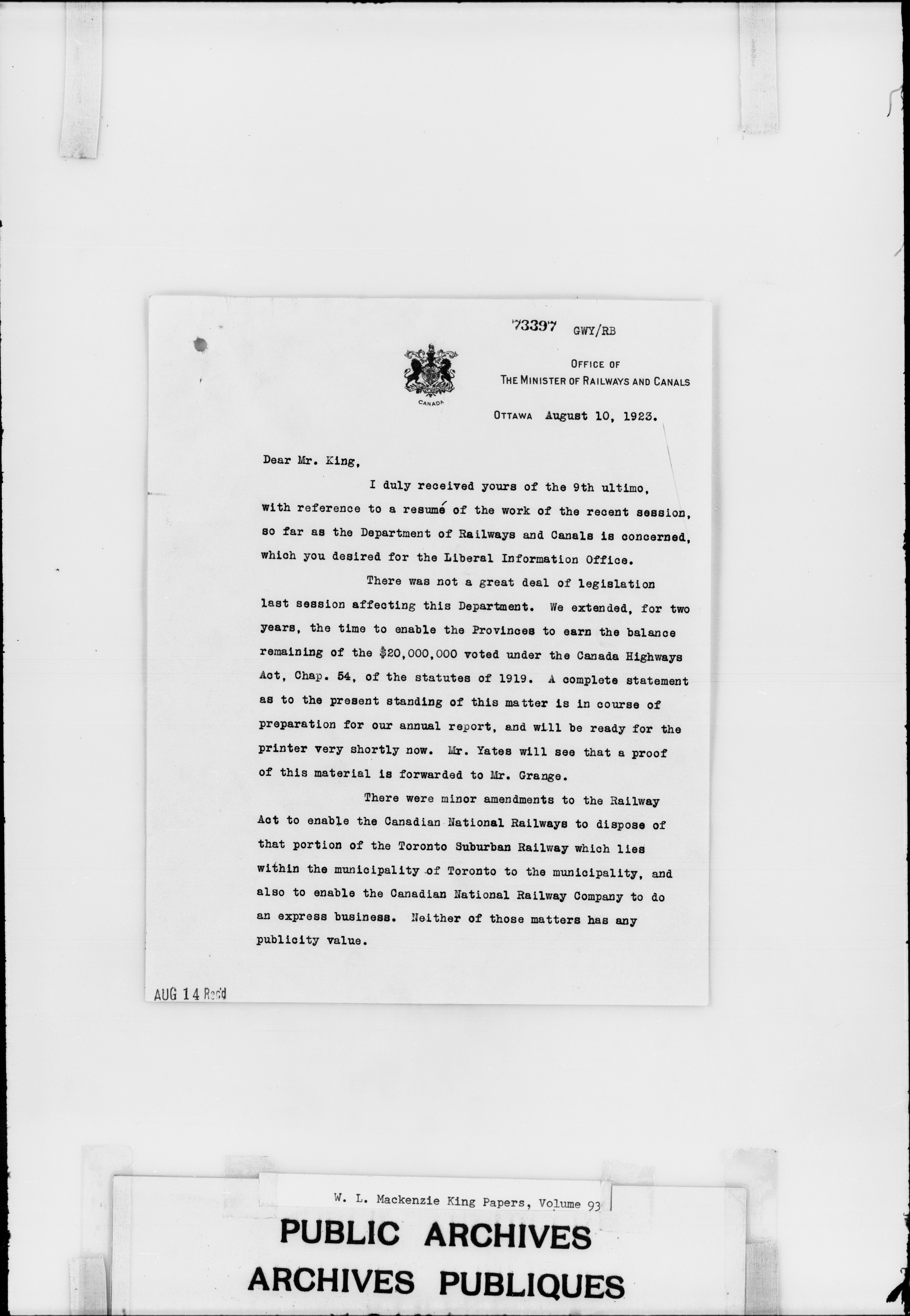 William Lyon Mackenzie King : Primary series correspondence (J1) - 2253