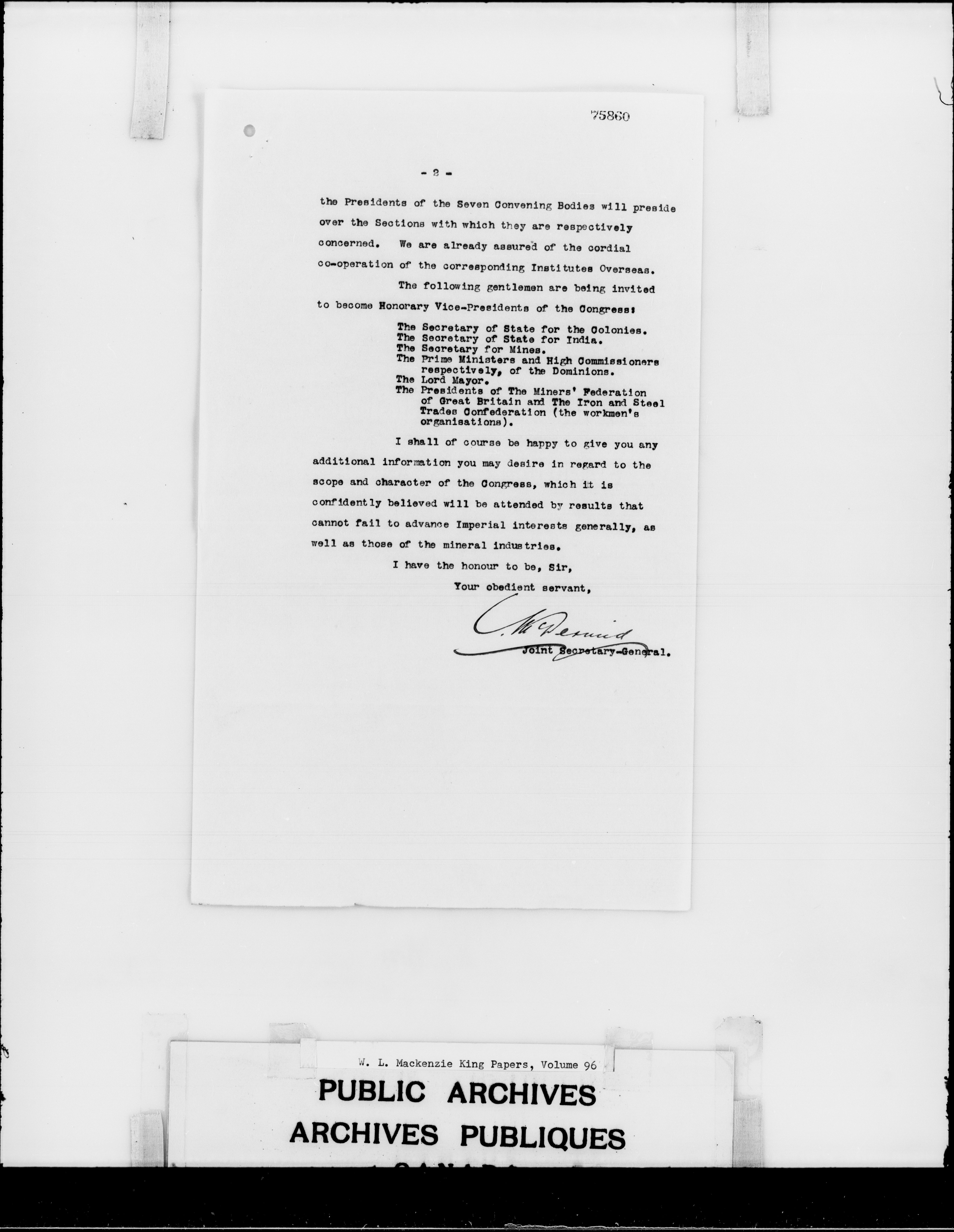 William Lyon Mackenzie King : Primary series correspondence (J1) : C-2255