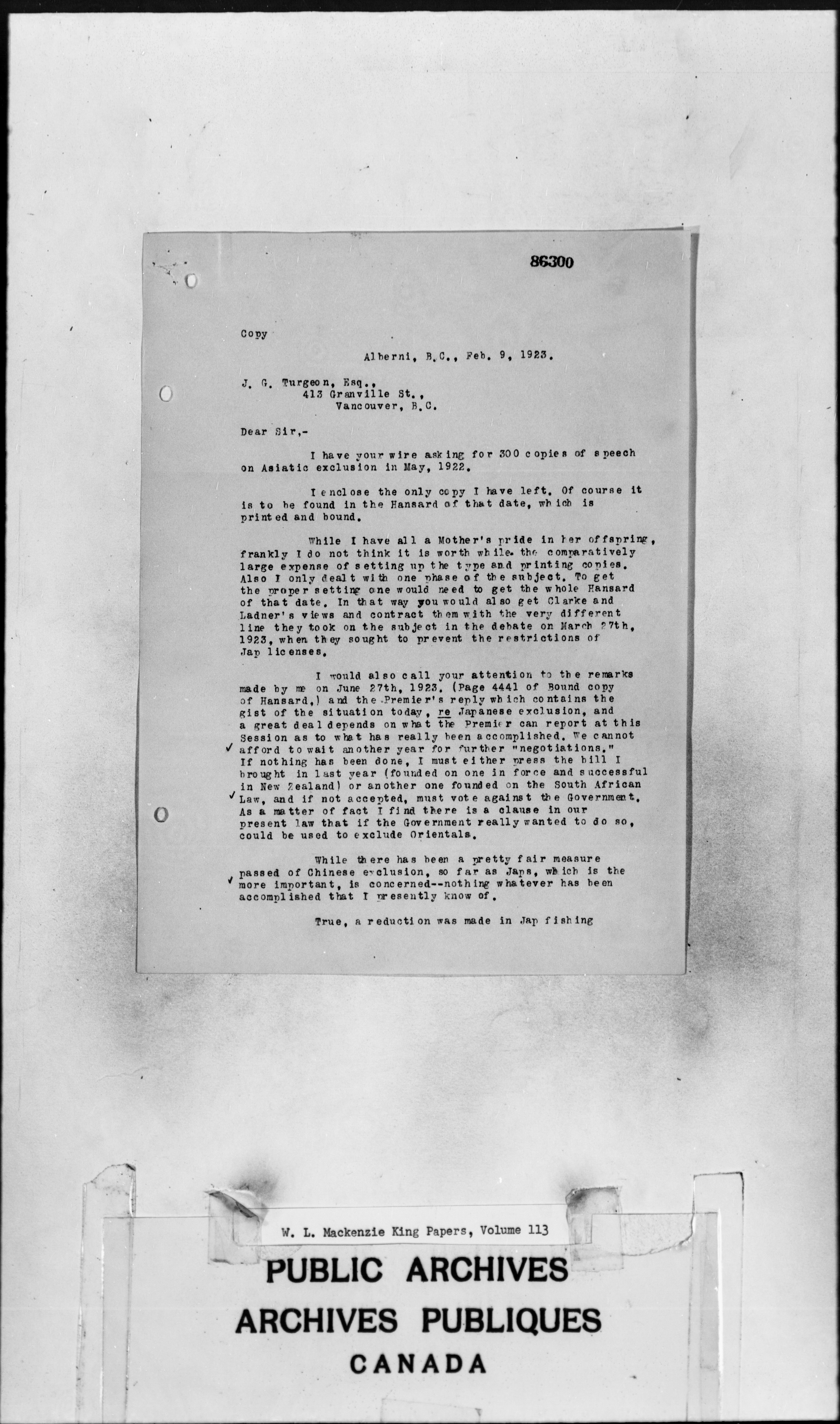 William Lyon Mackenzie King : Primary series correspondence (J1) - 2266