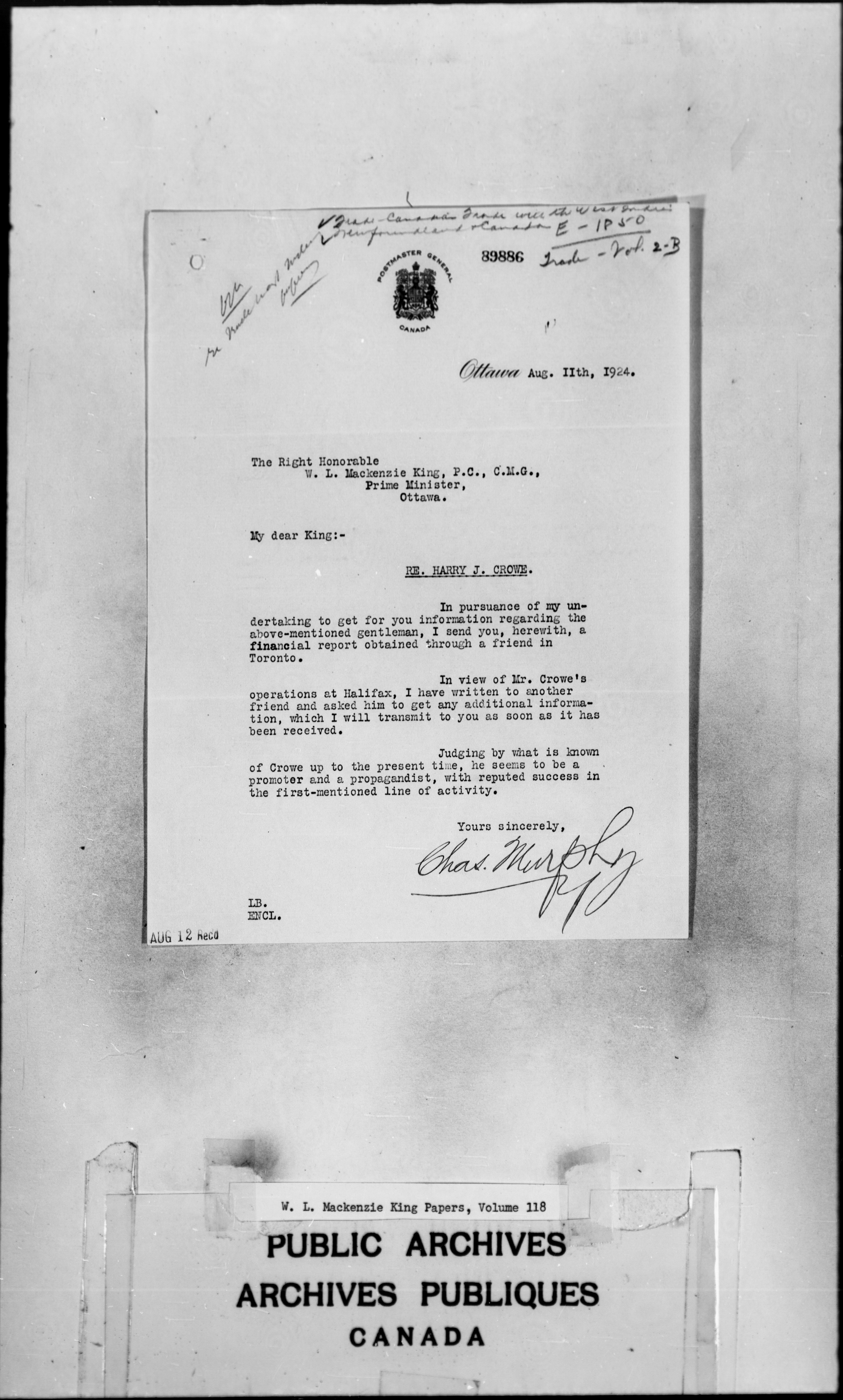 William Lyon Mackenzie King : Primary series correspondence (J1) - 2268