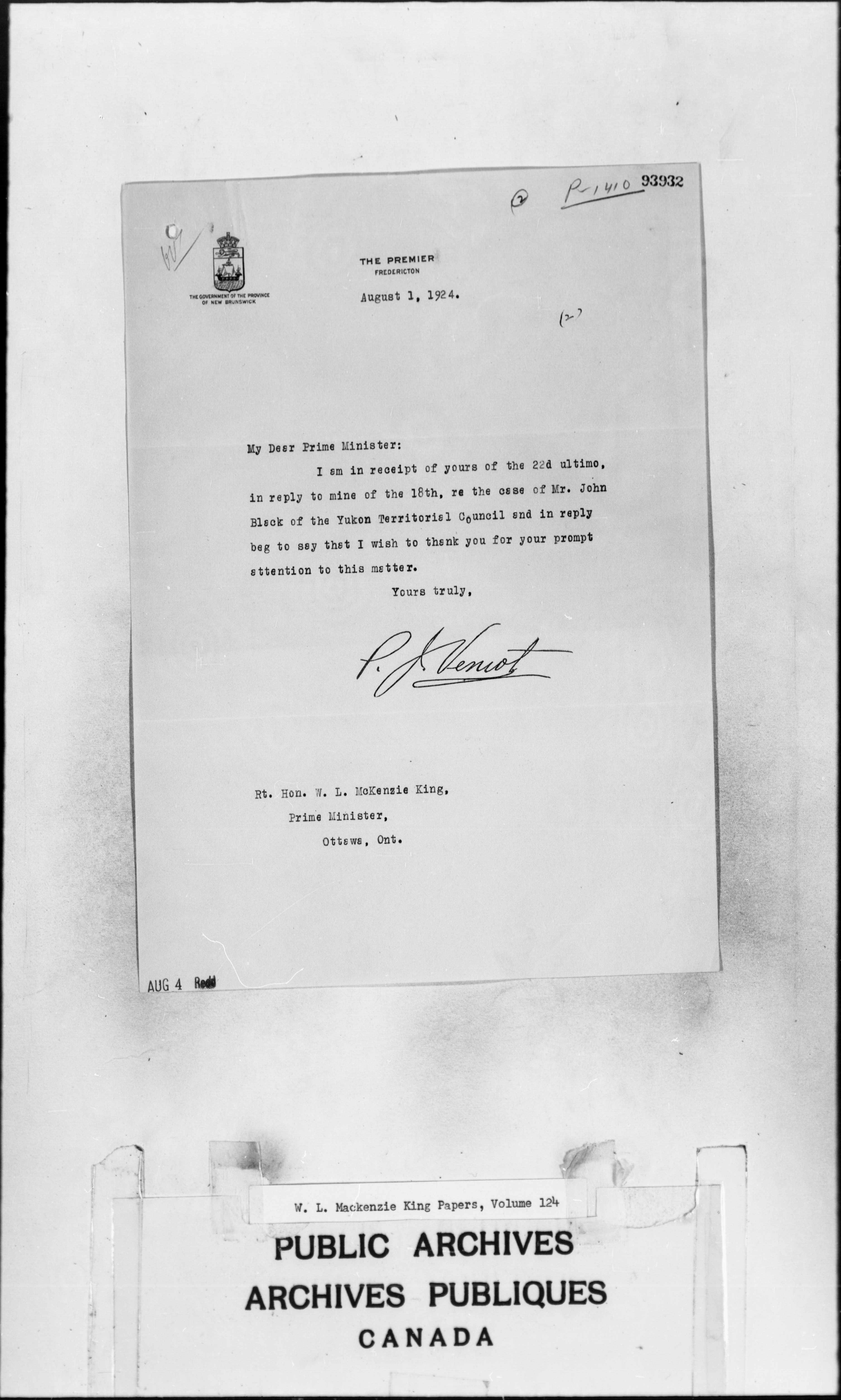 William Lyon Mackenzie King : Primary series correspondence (J1) - 2272
