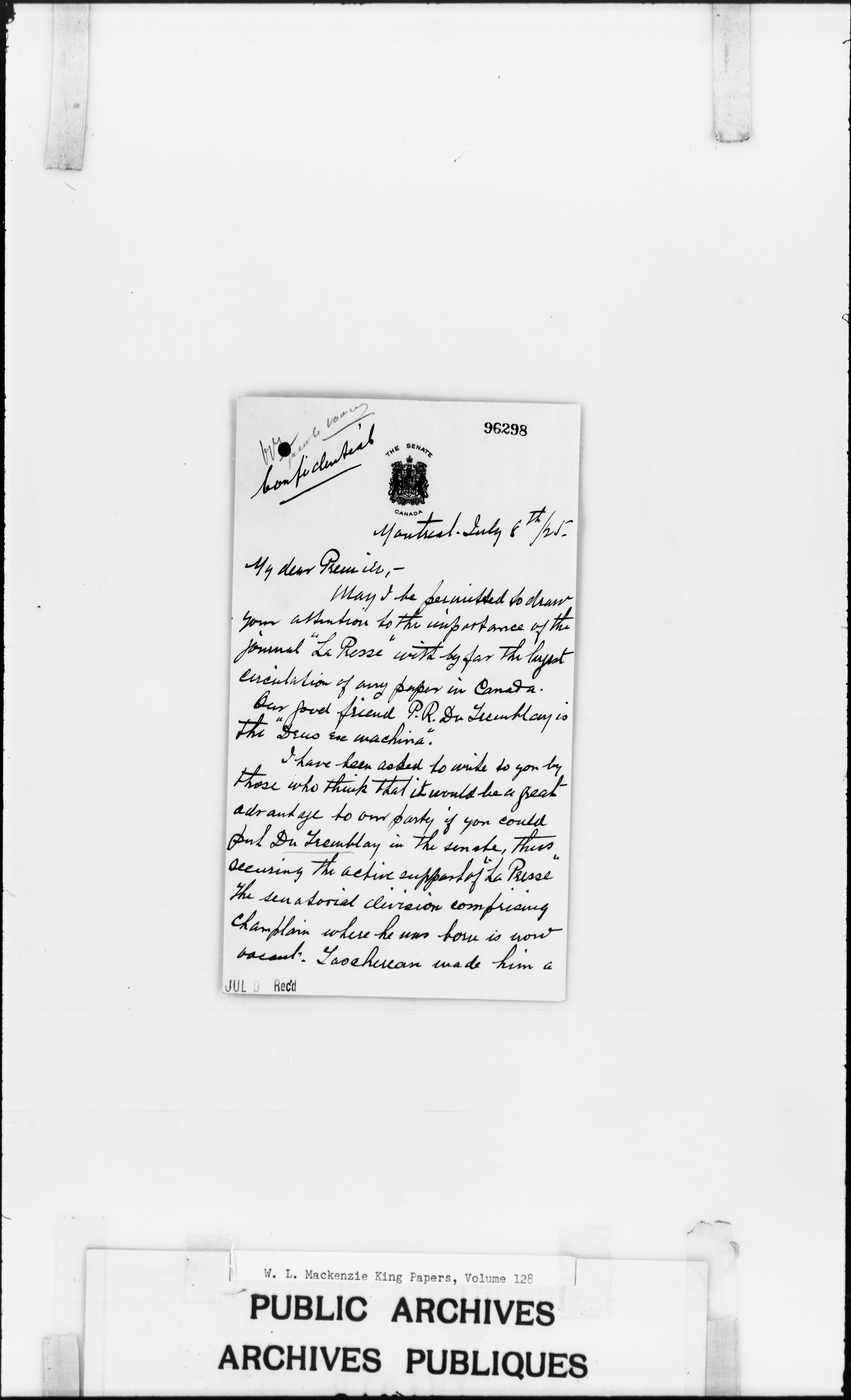 William Lyon Mackenzie King : Primary series correspondence (J1) - 2274