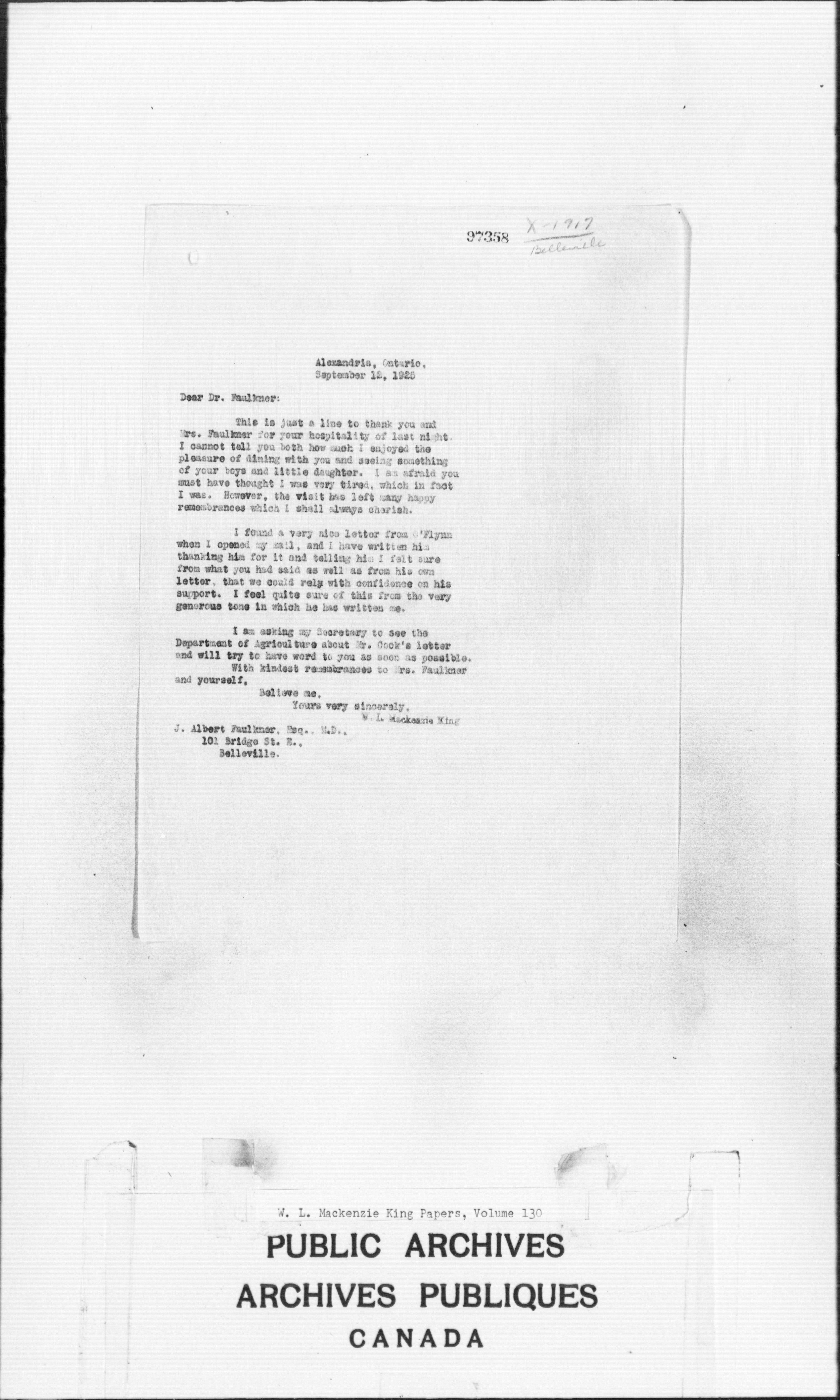 William Lyon Mackenzie King : Primary series correspondence (J1) - 2276