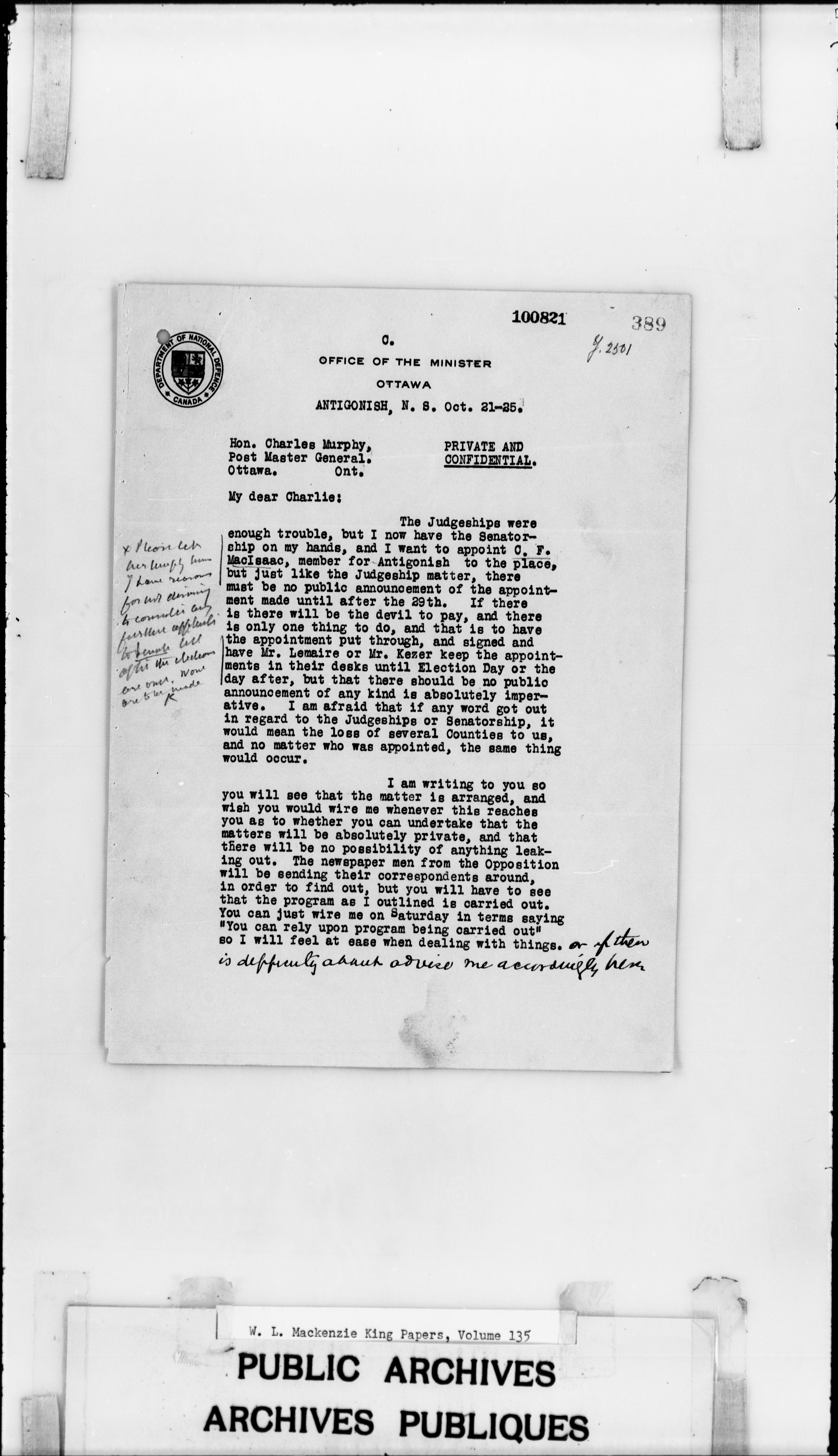 William Lyon Mackenzie King : Primary series correspondence (J1) : C-2278