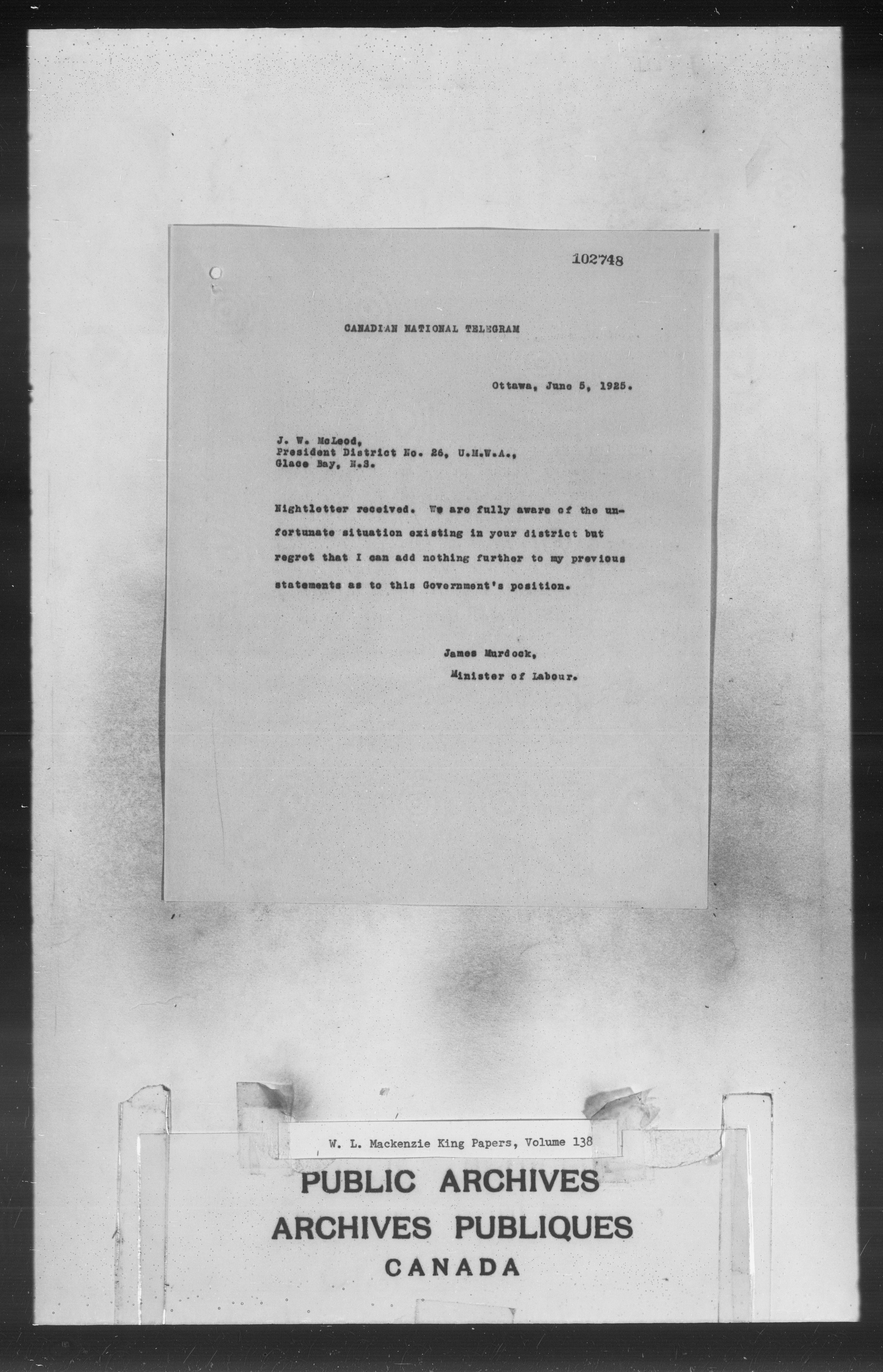 William Lyon Mackenzie King : Primary series correspondence (J1) - 2280