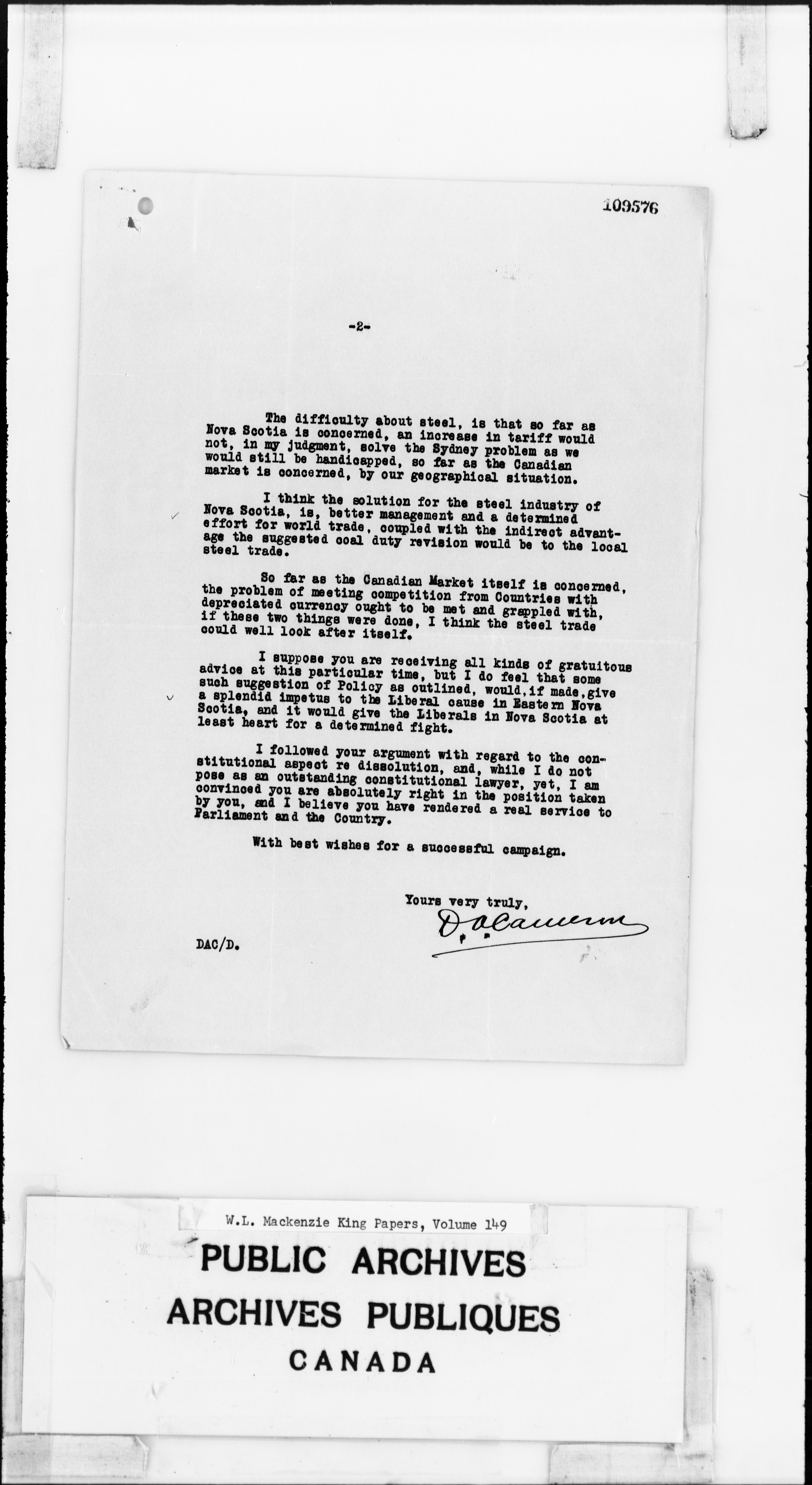 William Lyon Mackenzie King : Primary series correspondence (J1) : C-2286