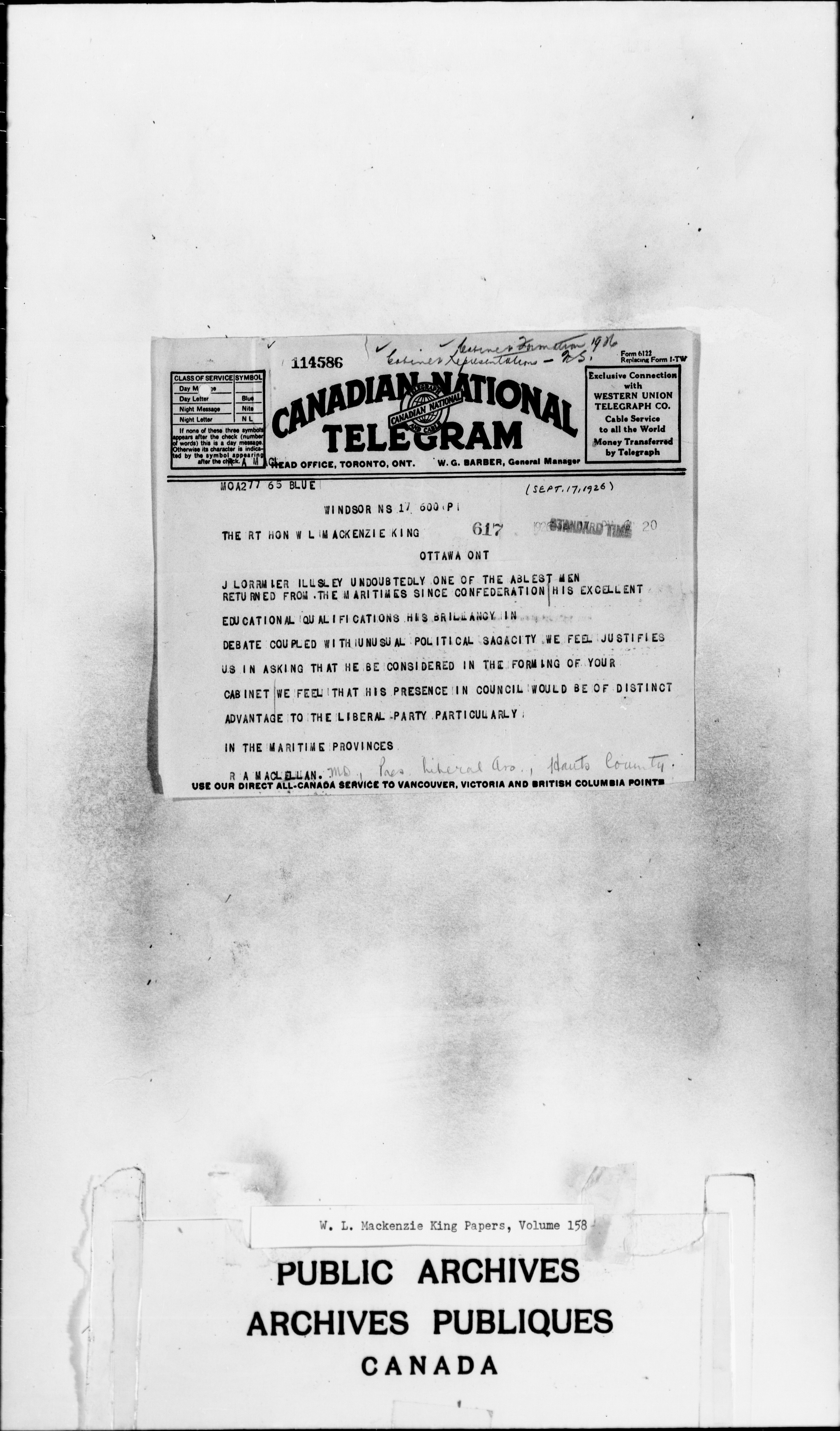 William Lyon Mackenzie King : Primary series correspondence (J1) - 2291