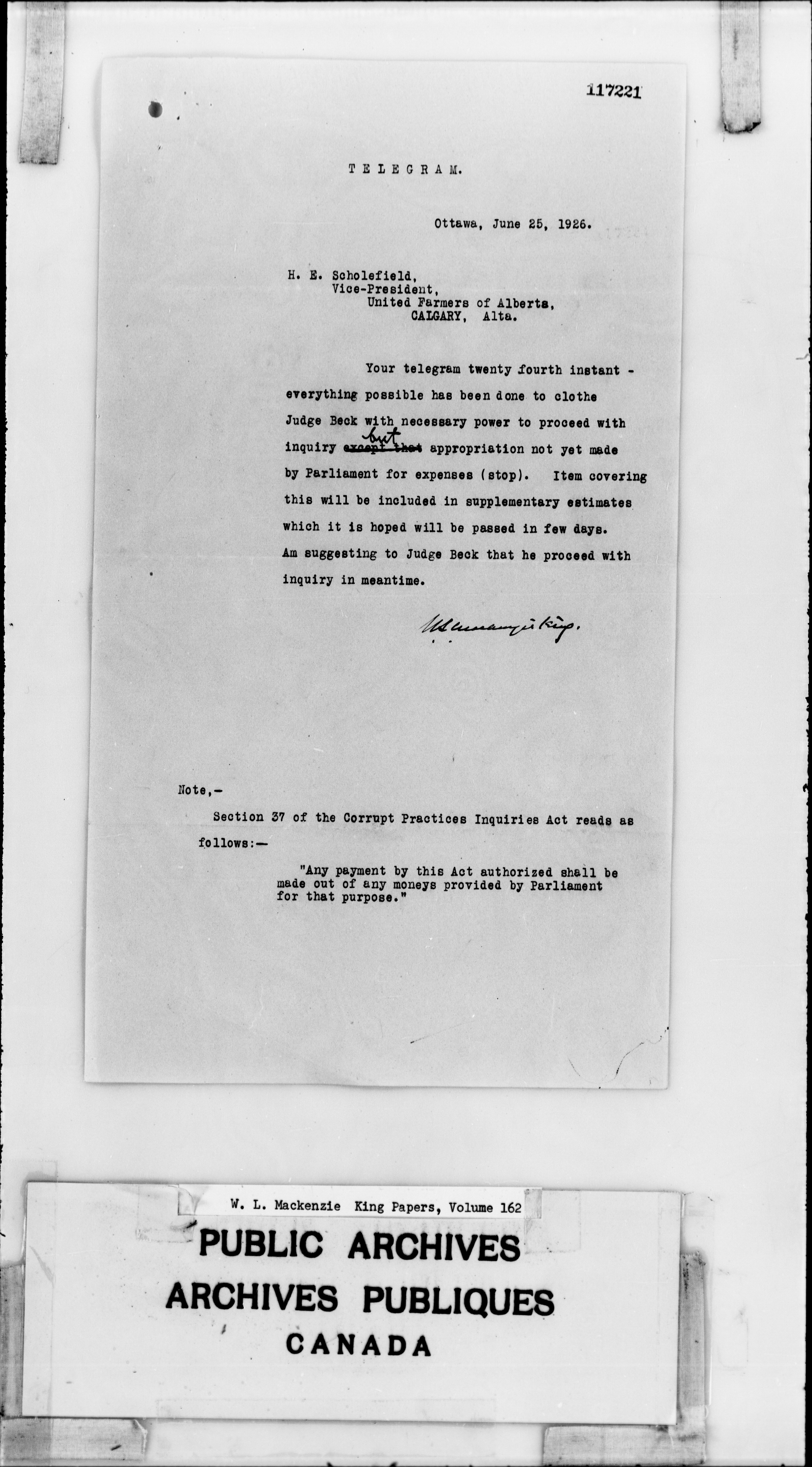 William Lyon Mackenzie King : Primary series correspondence (J1) - 2293