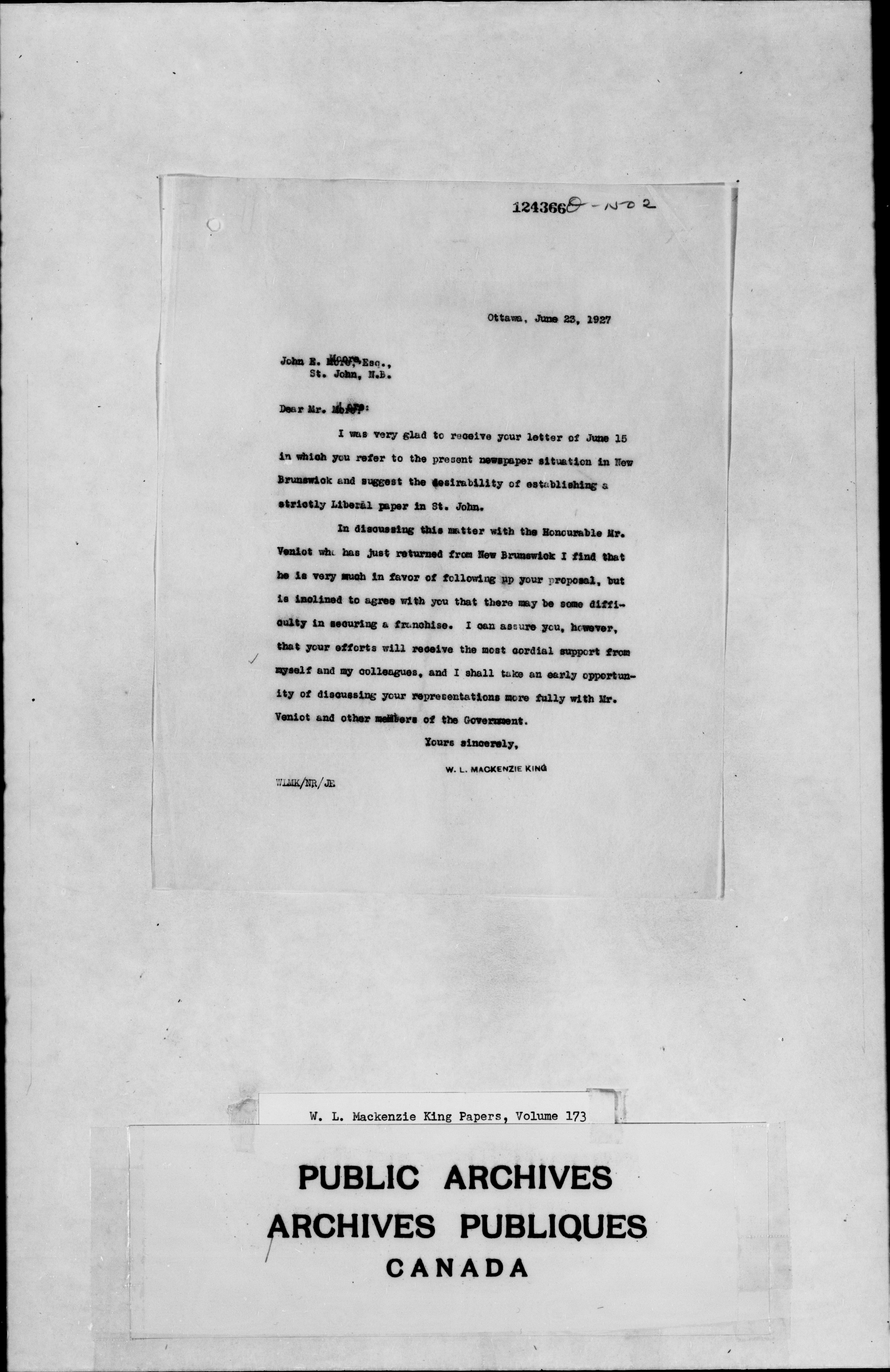William Lyon Mackenzie King : Primary series correspondence (J1) - 2299