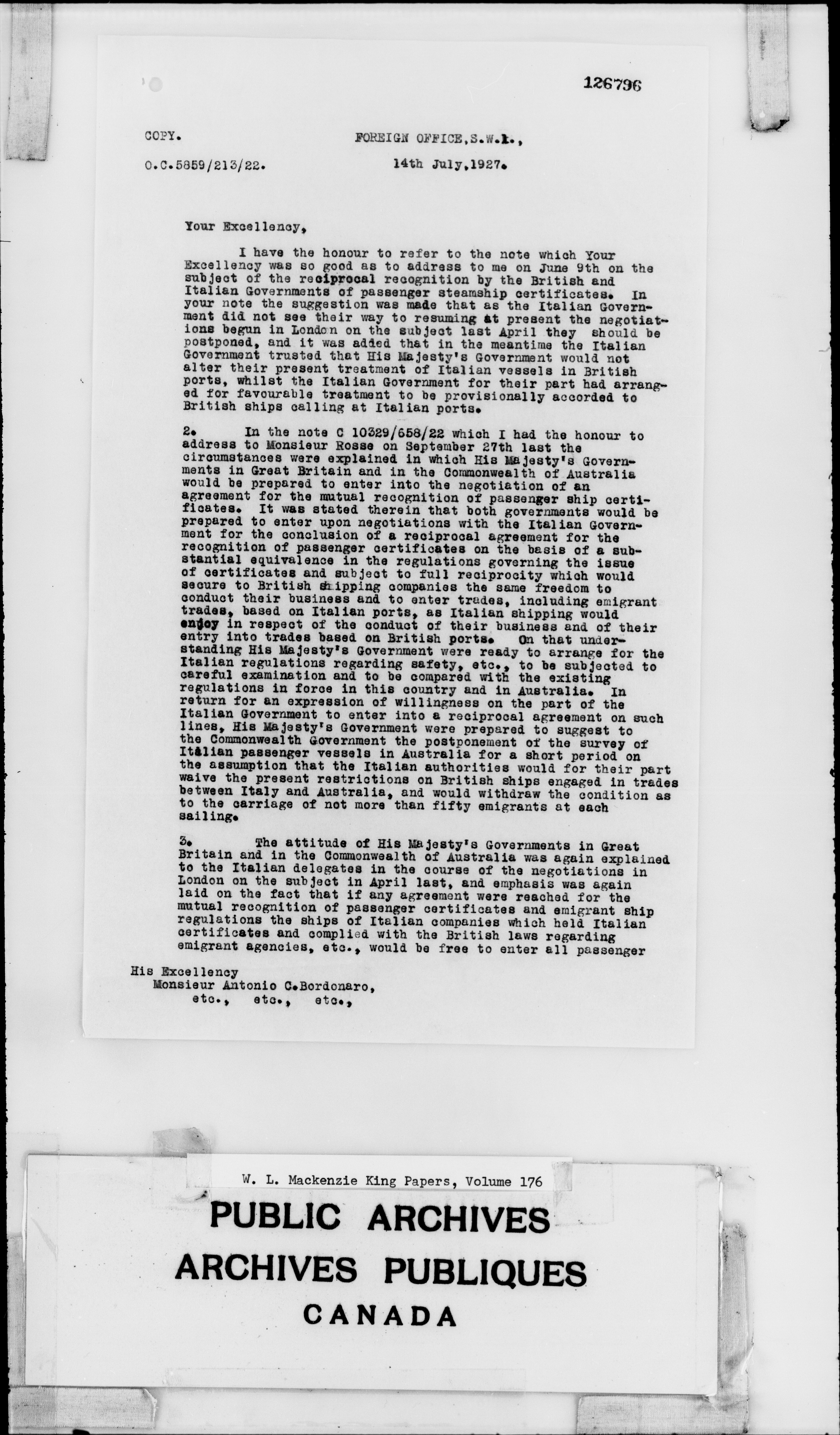 William Lyon Mackenzie King : Primary series correspondence (J1) - 2300