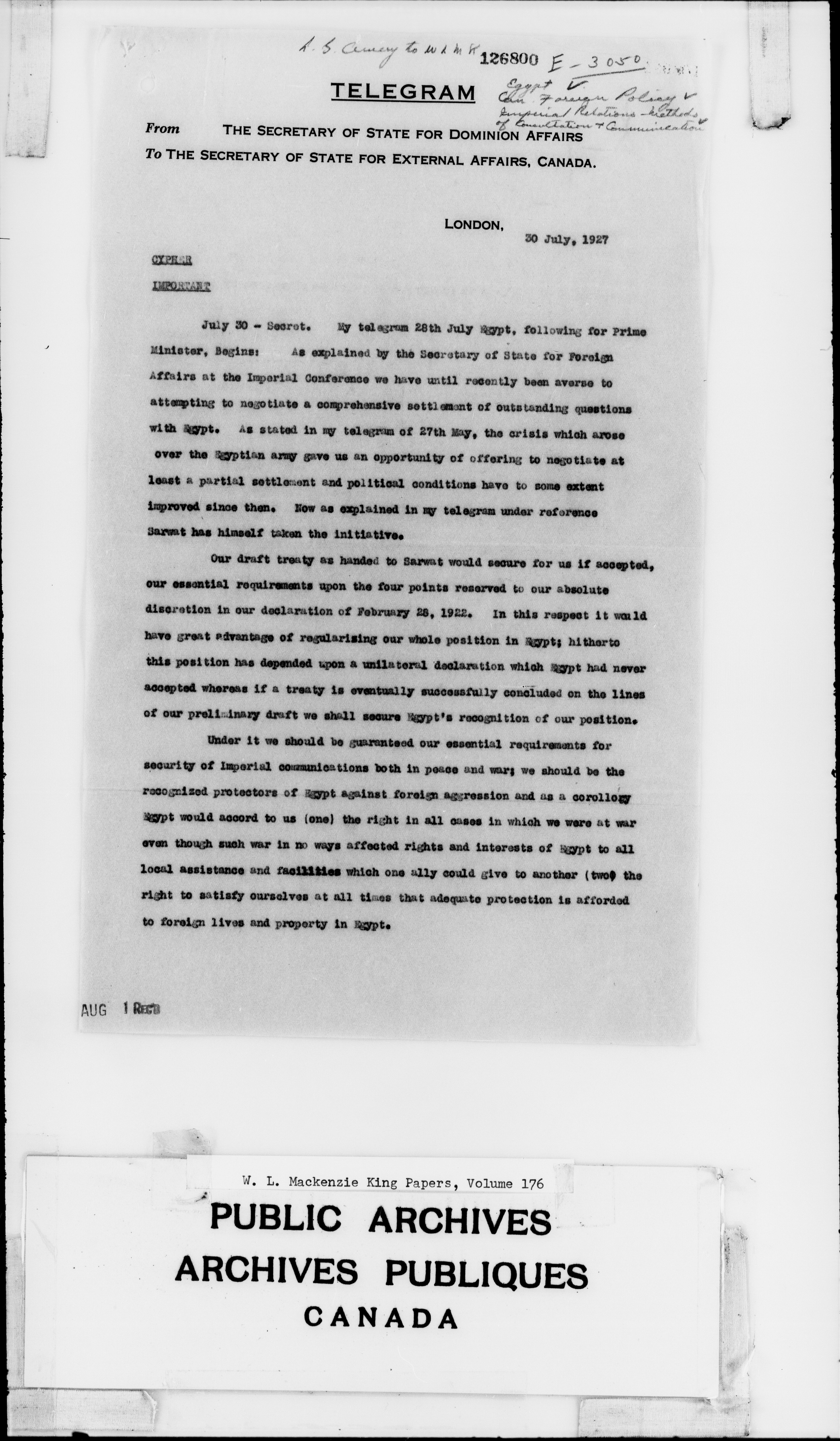 William Lyon Mackenzie King : Primary series correspondence (J1) - 2300
