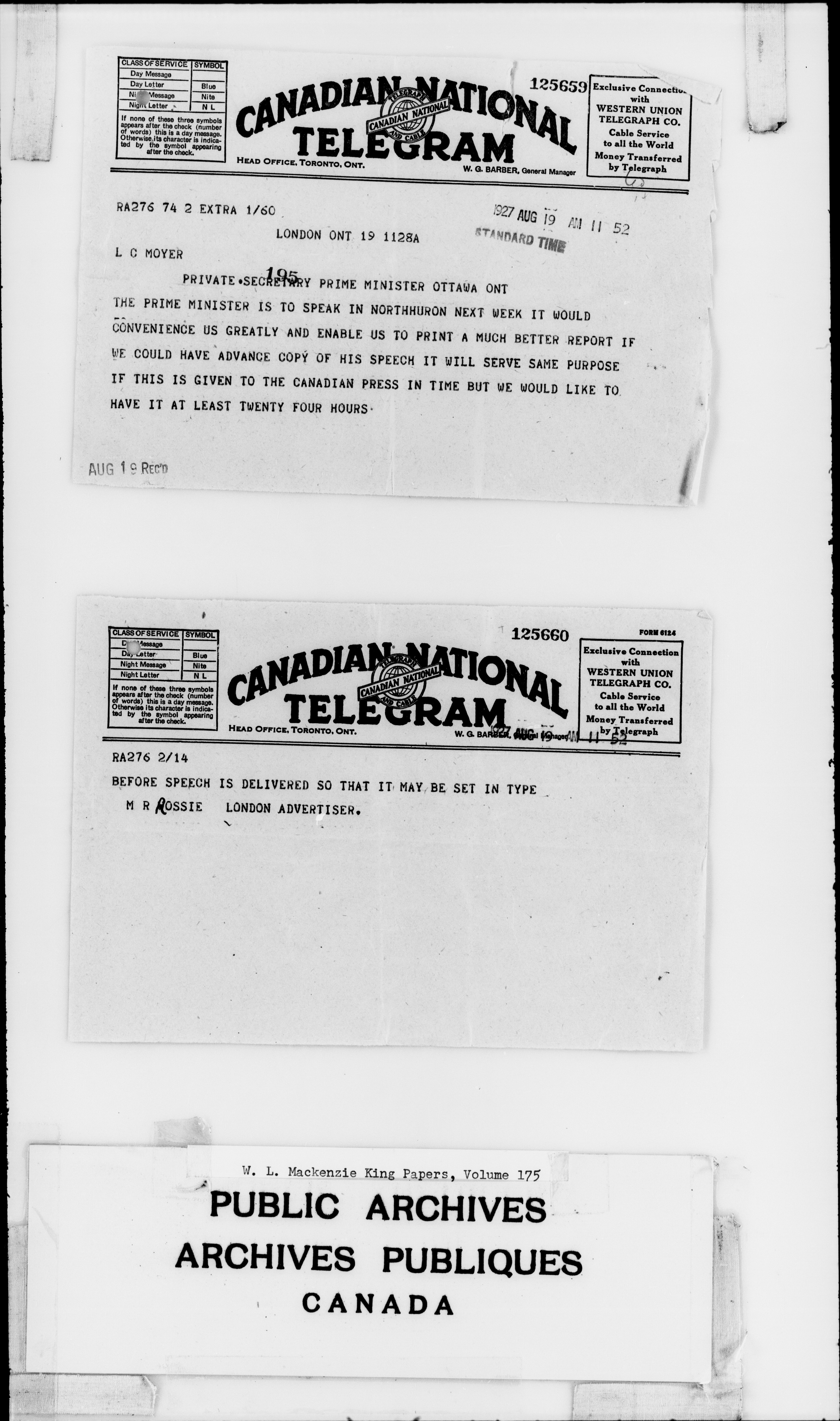 William Lyon Mackenzie King : Primary series correspondence (J1) - 2300