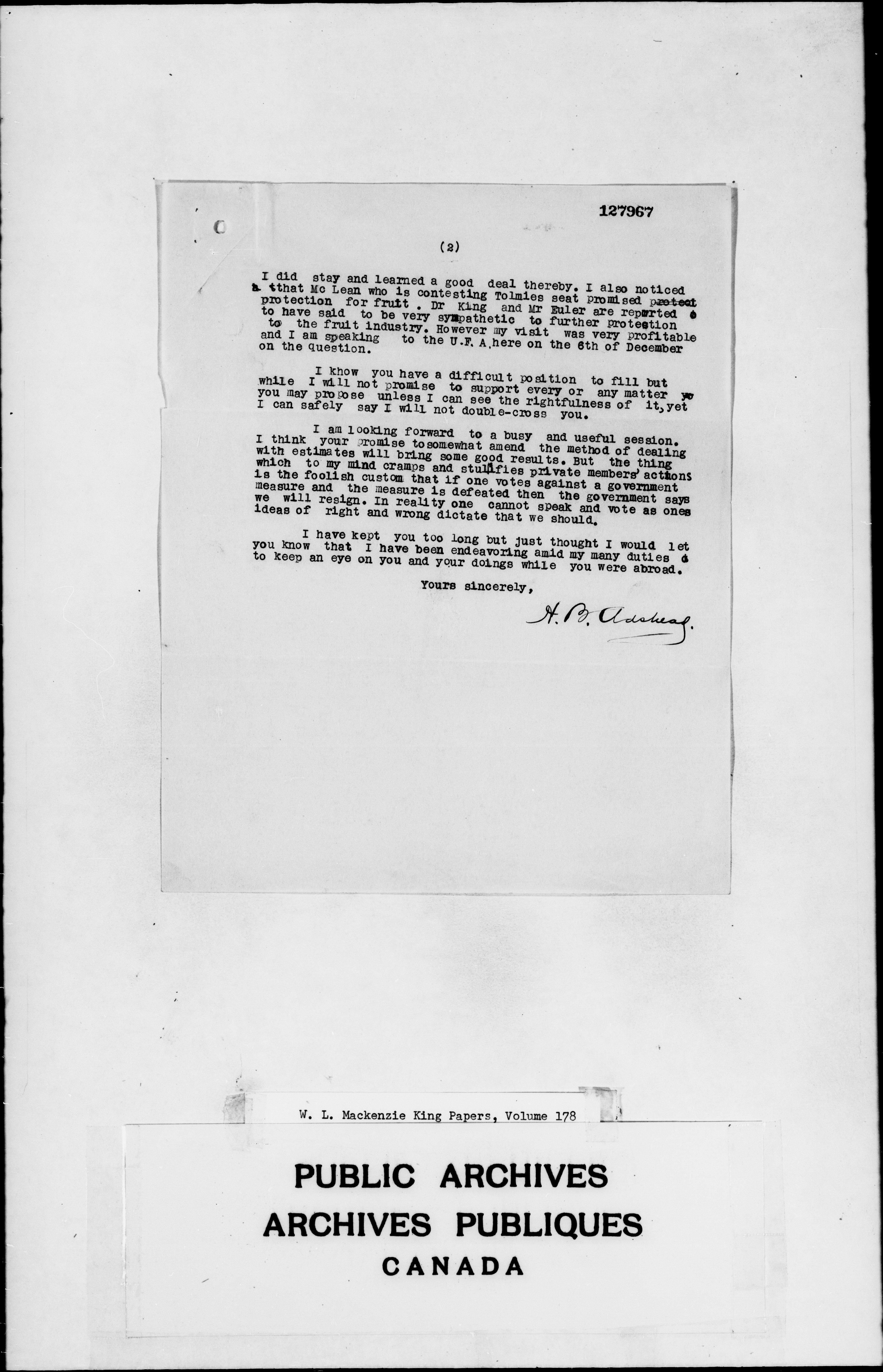 William Lyon Mackenzie King : Primary series correspondence (J1) : C-2301