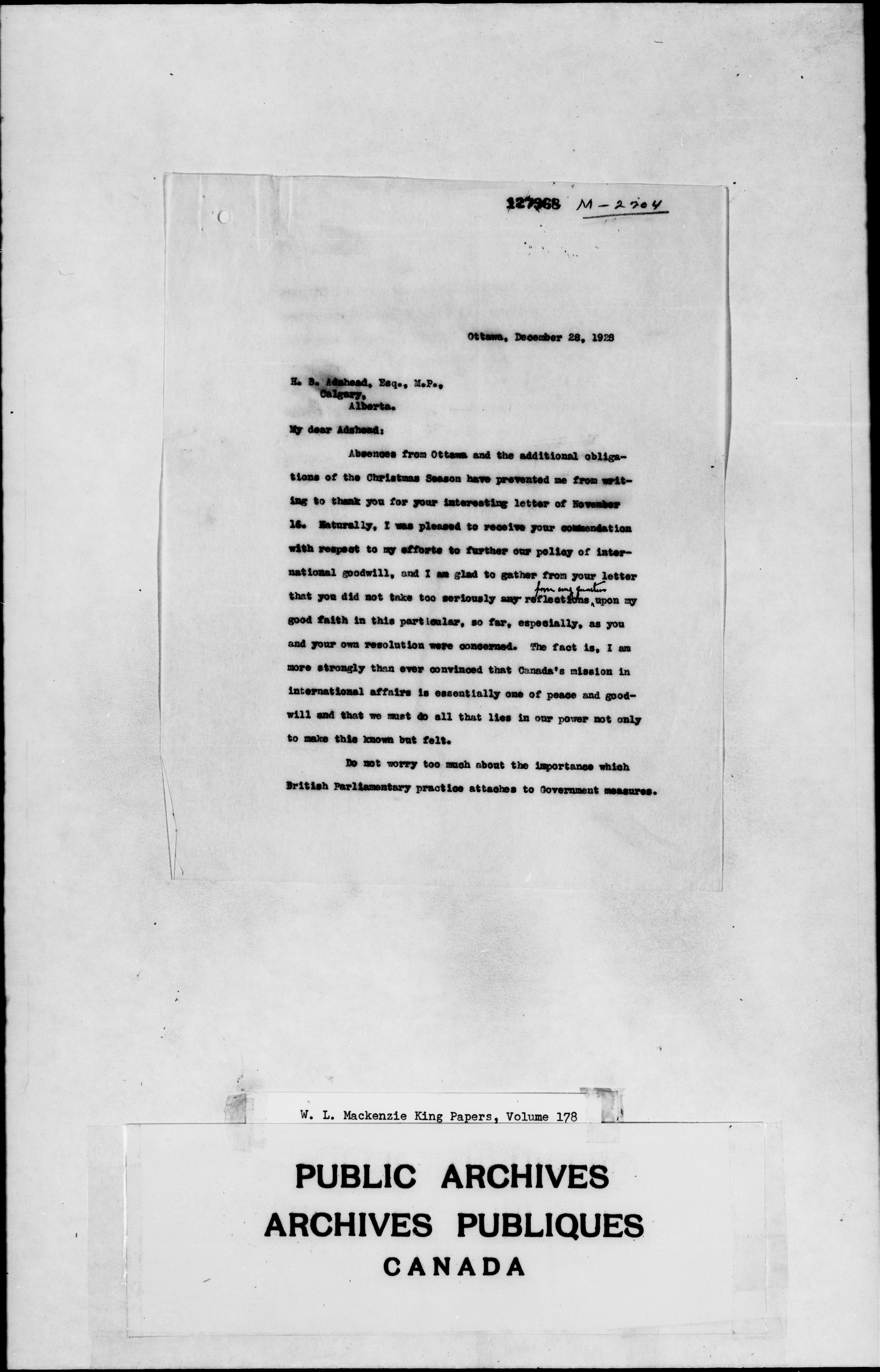 William Lyon Mackenzie King : Primary series correspondence (J1) - 2301