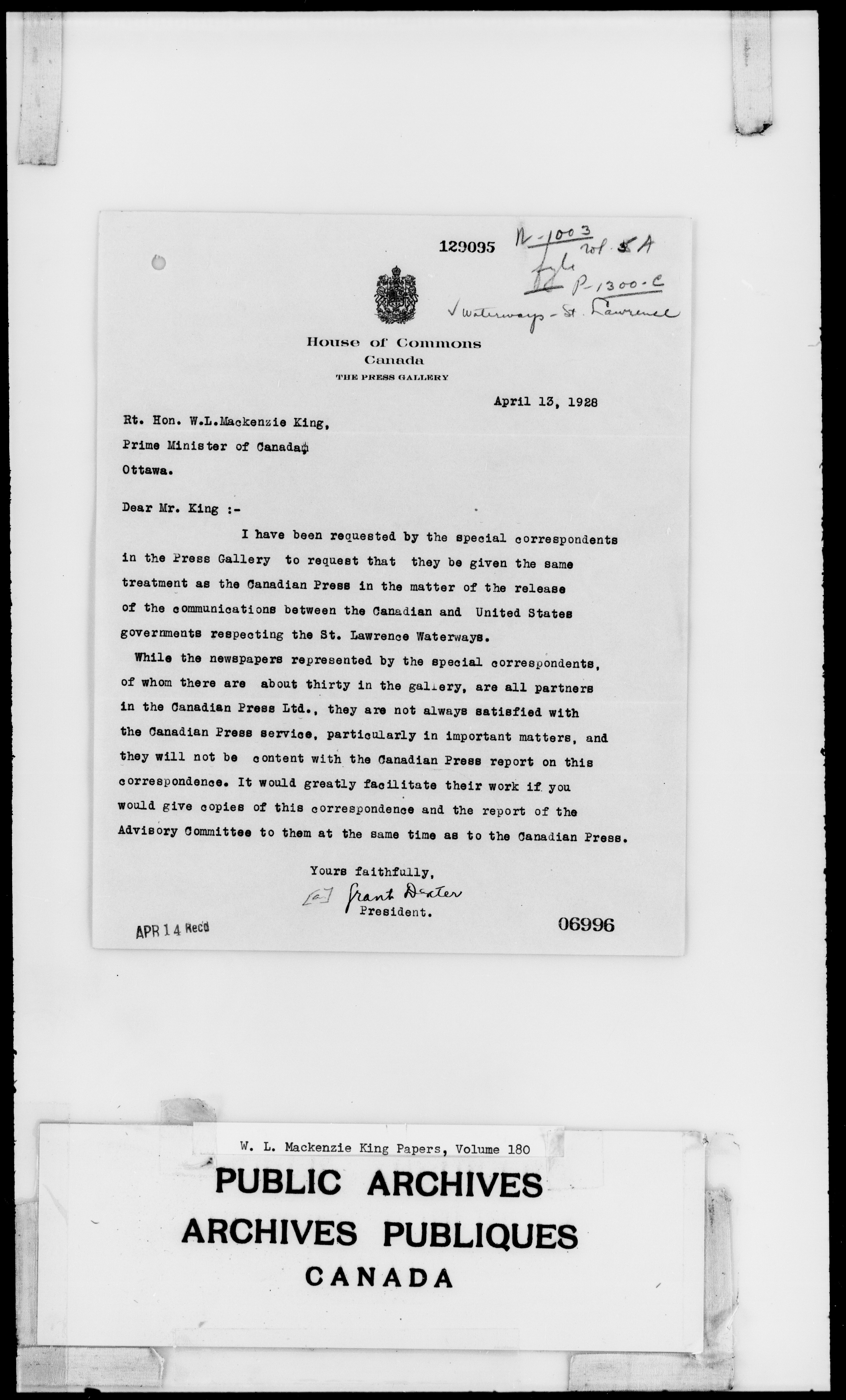 William Lyon Mackenzie King : Primary series correspondence (J1) - 2302