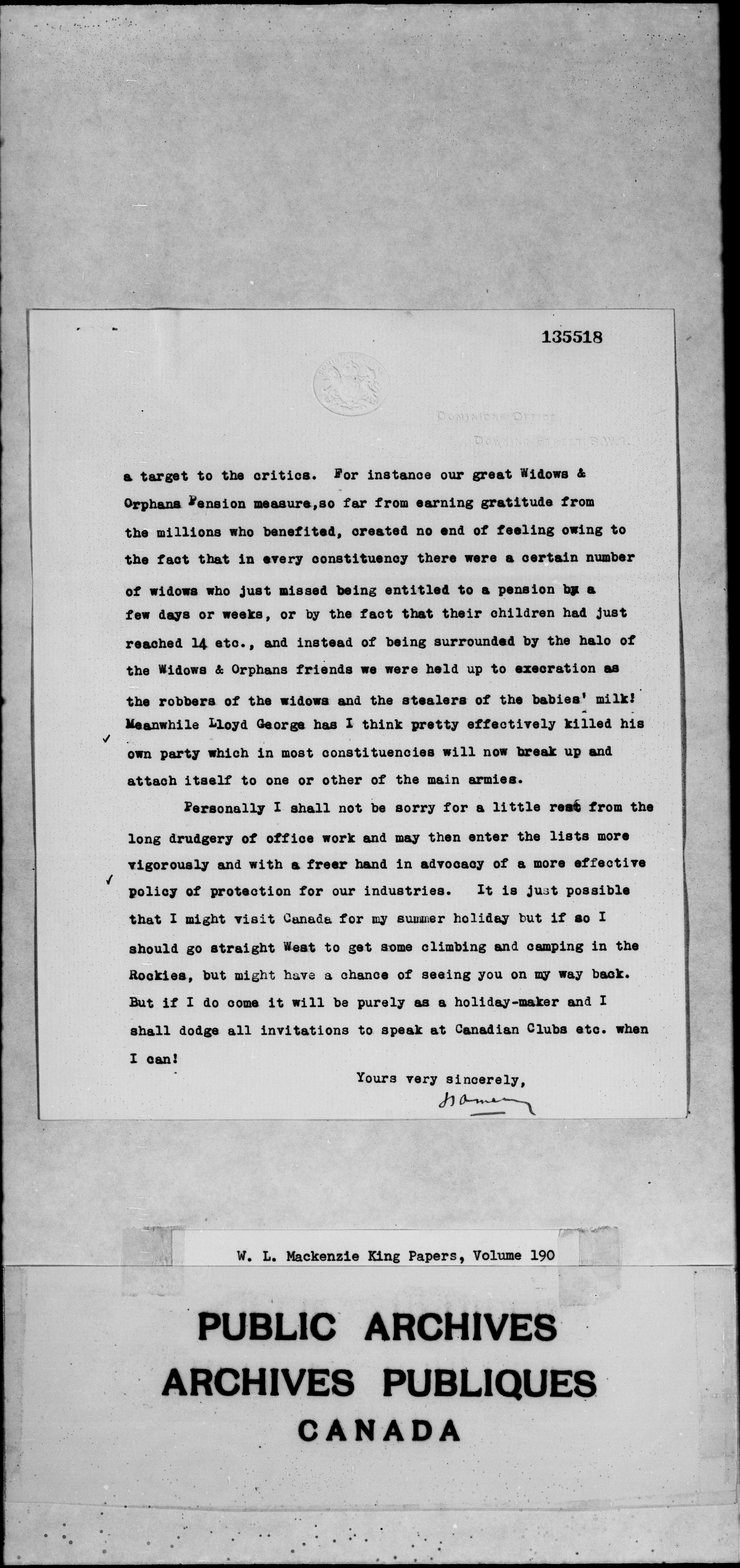 William Lyon Mackenzie King : Primary series correspondence (J1) - 2307