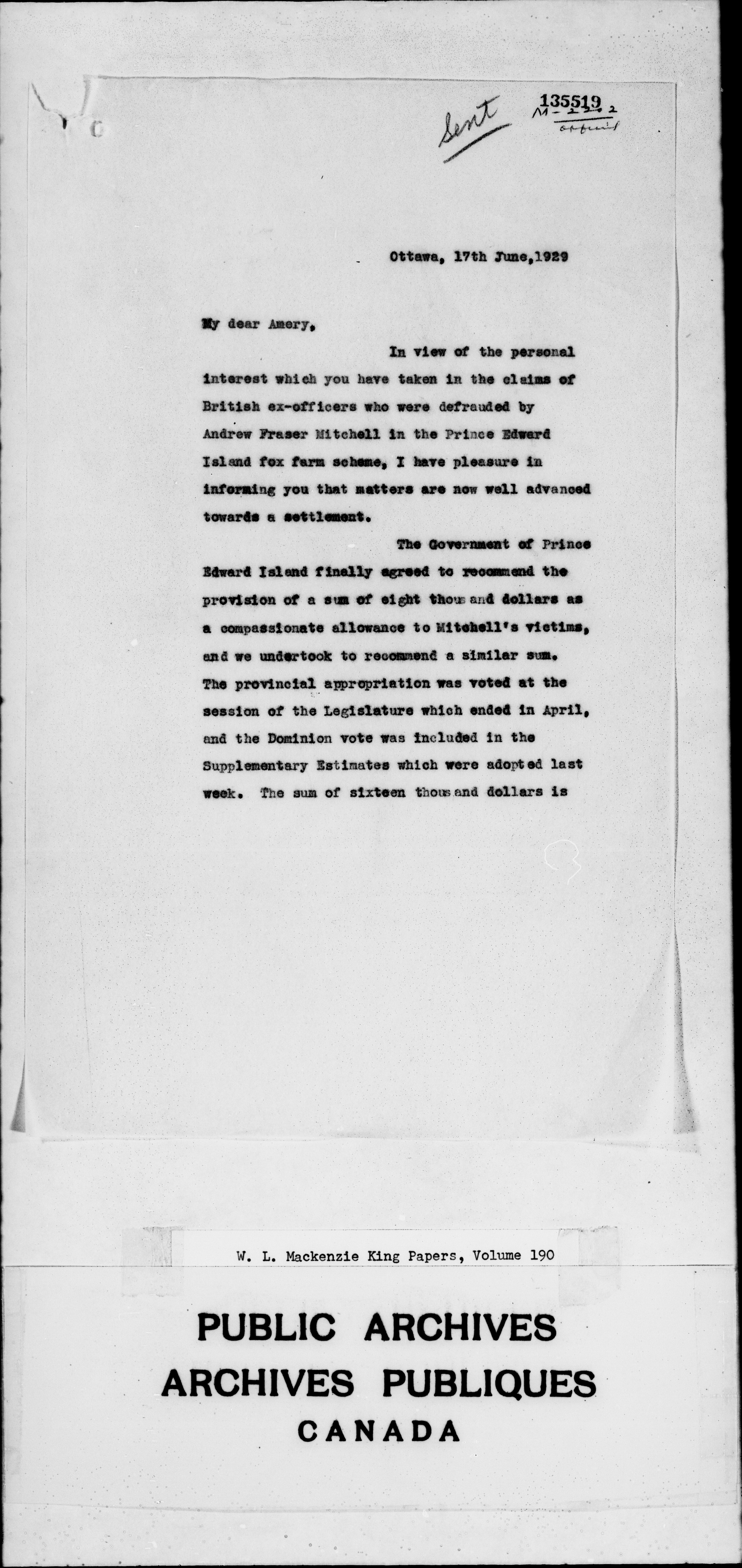 William Lyon Mackenzie King : Primary series correspondence (J1) : C-2307