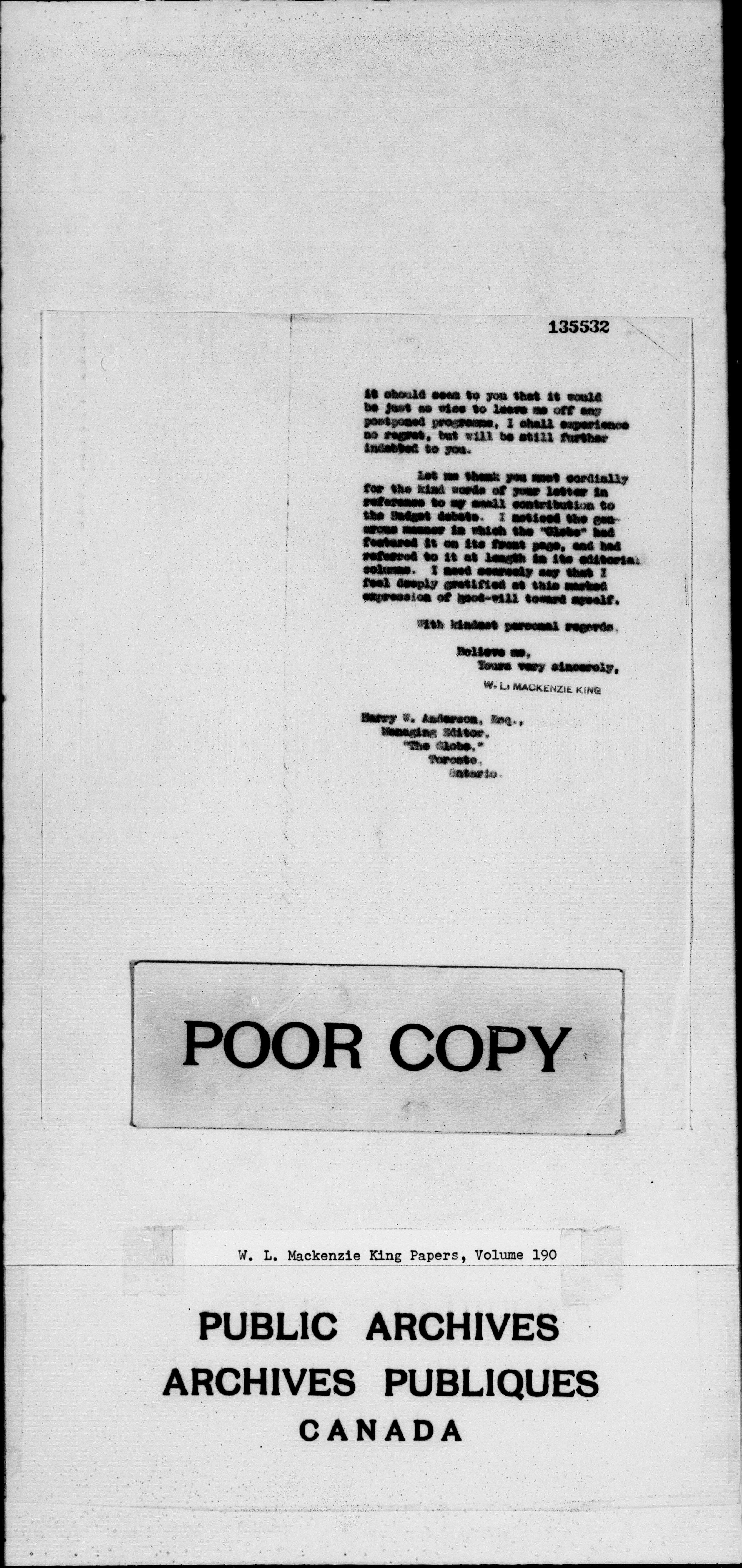 William Lyon Mackenzie King : Primary series correspondence (J1) - 2307