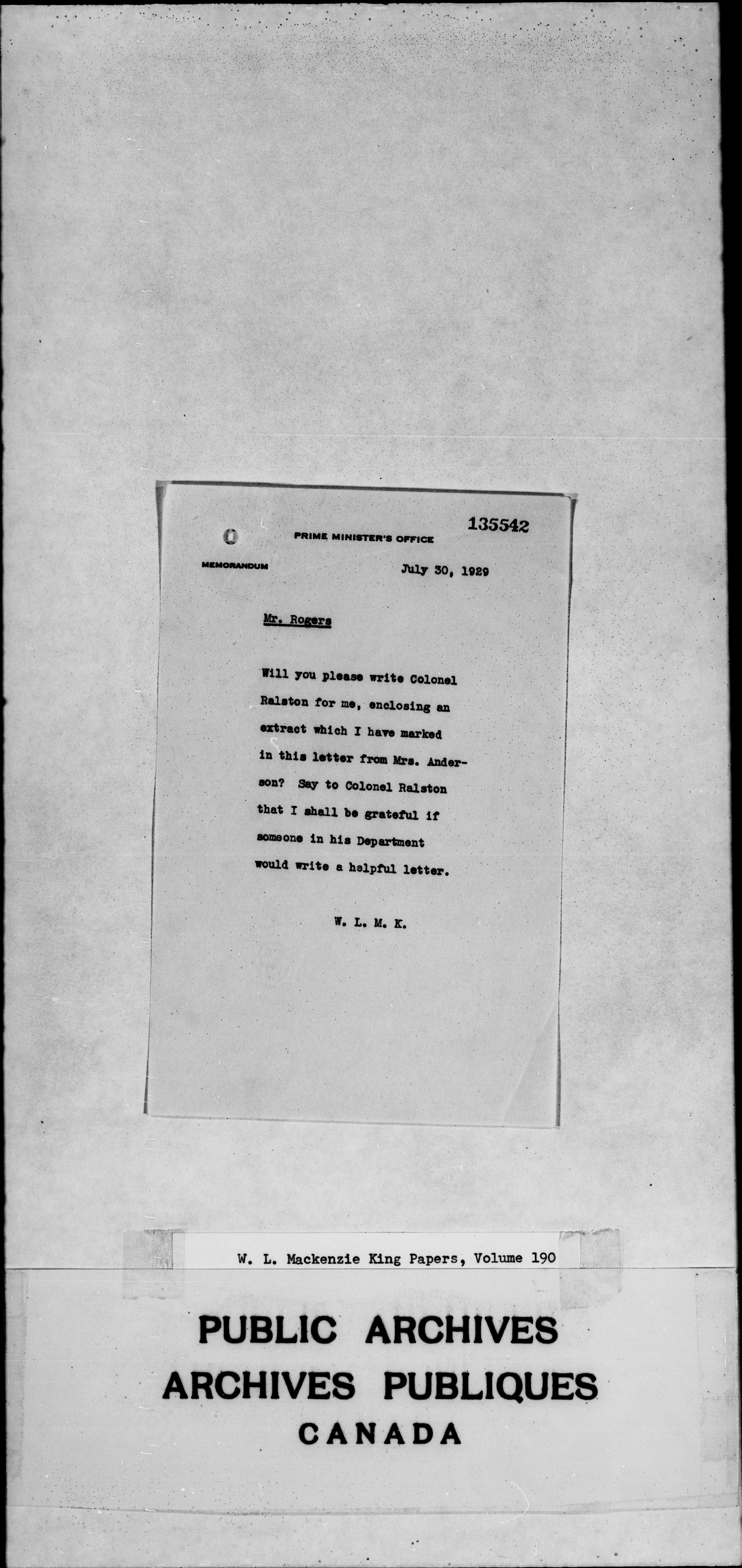William Lyon Mackenzie King : Primary series correspondence (J1) - 2307