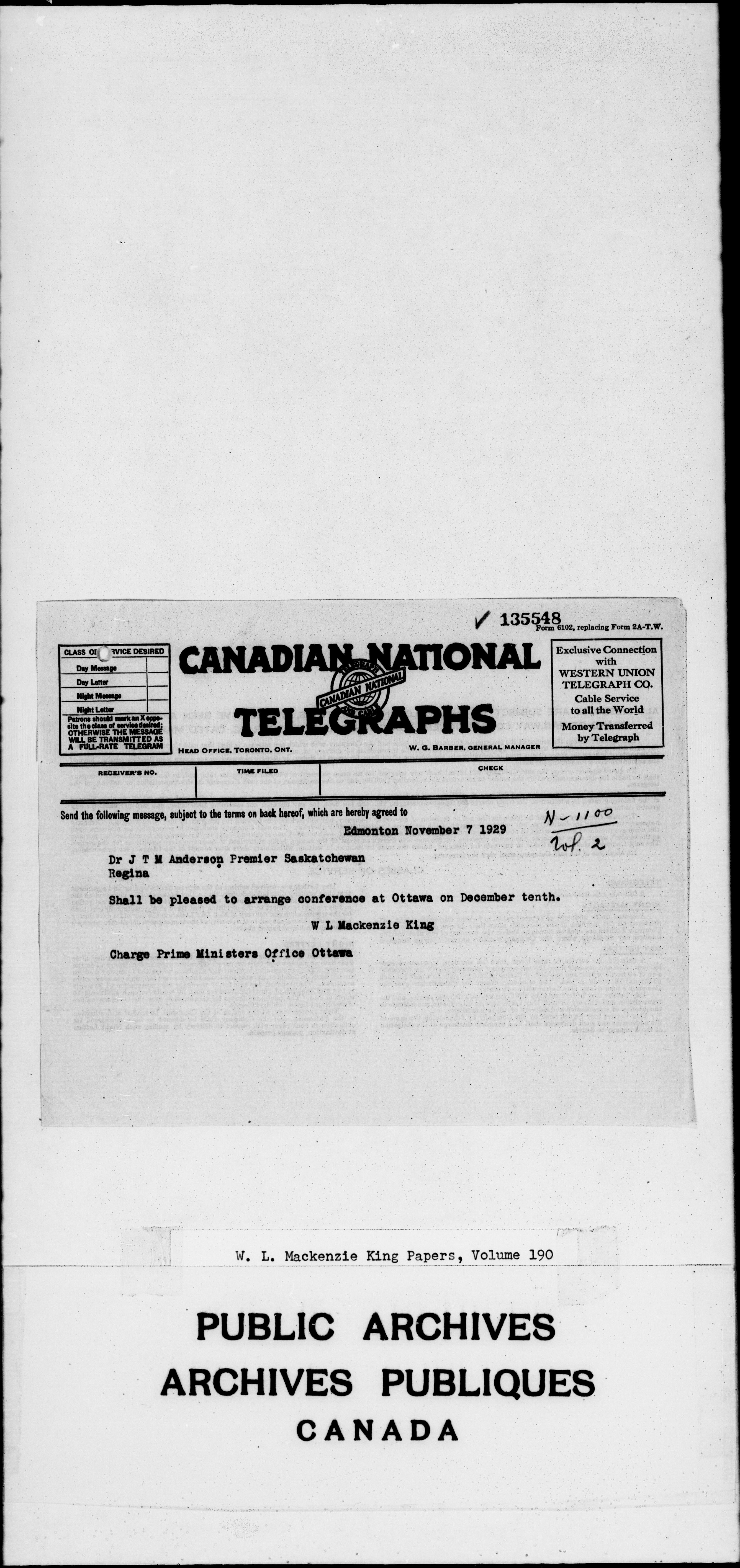 William Lyon Mackenzie King : Primary series correspondence (J1) - 2307