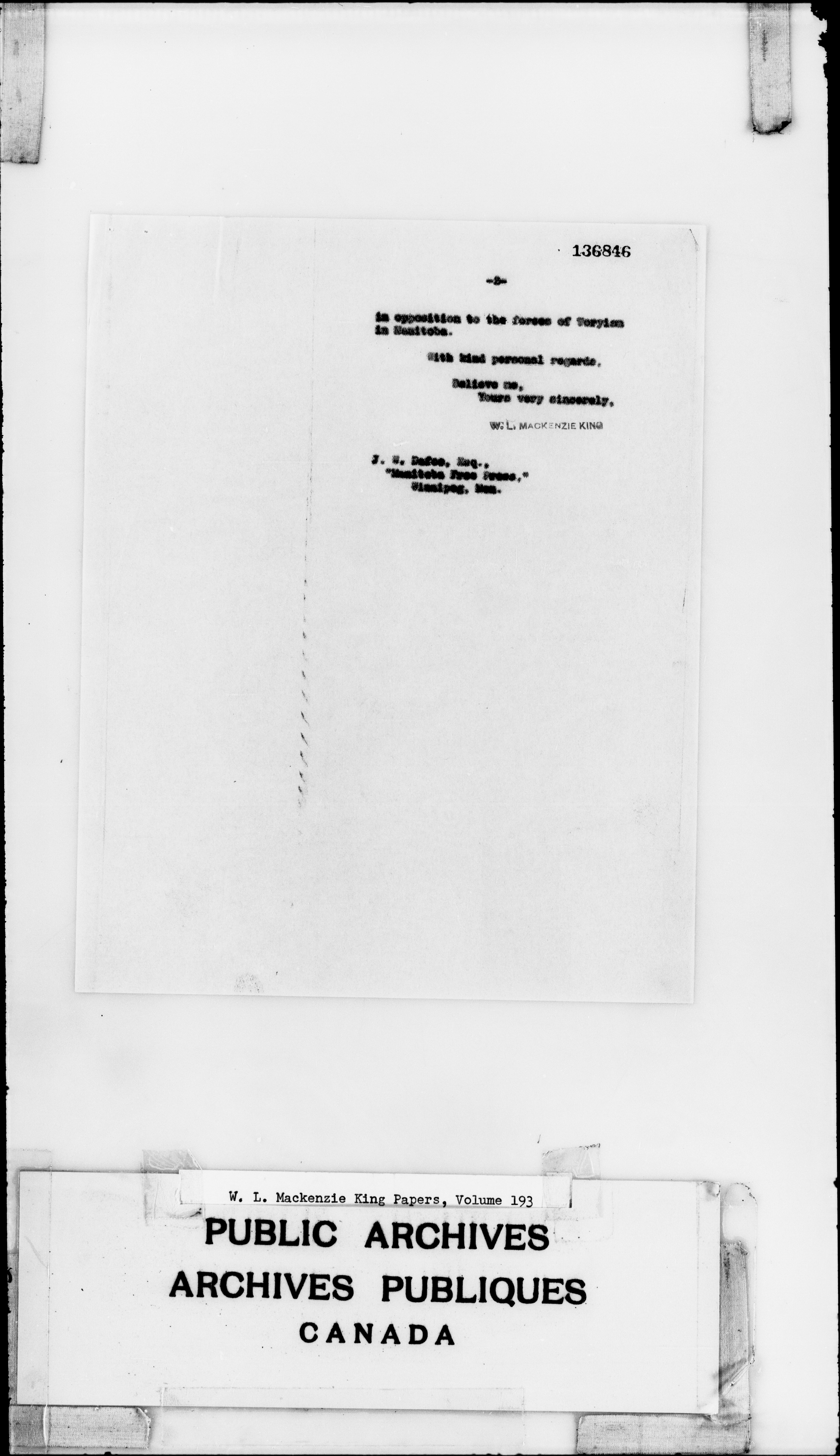 William Lyon Mackenzie King : Primary series correspondence (J1) - 2309