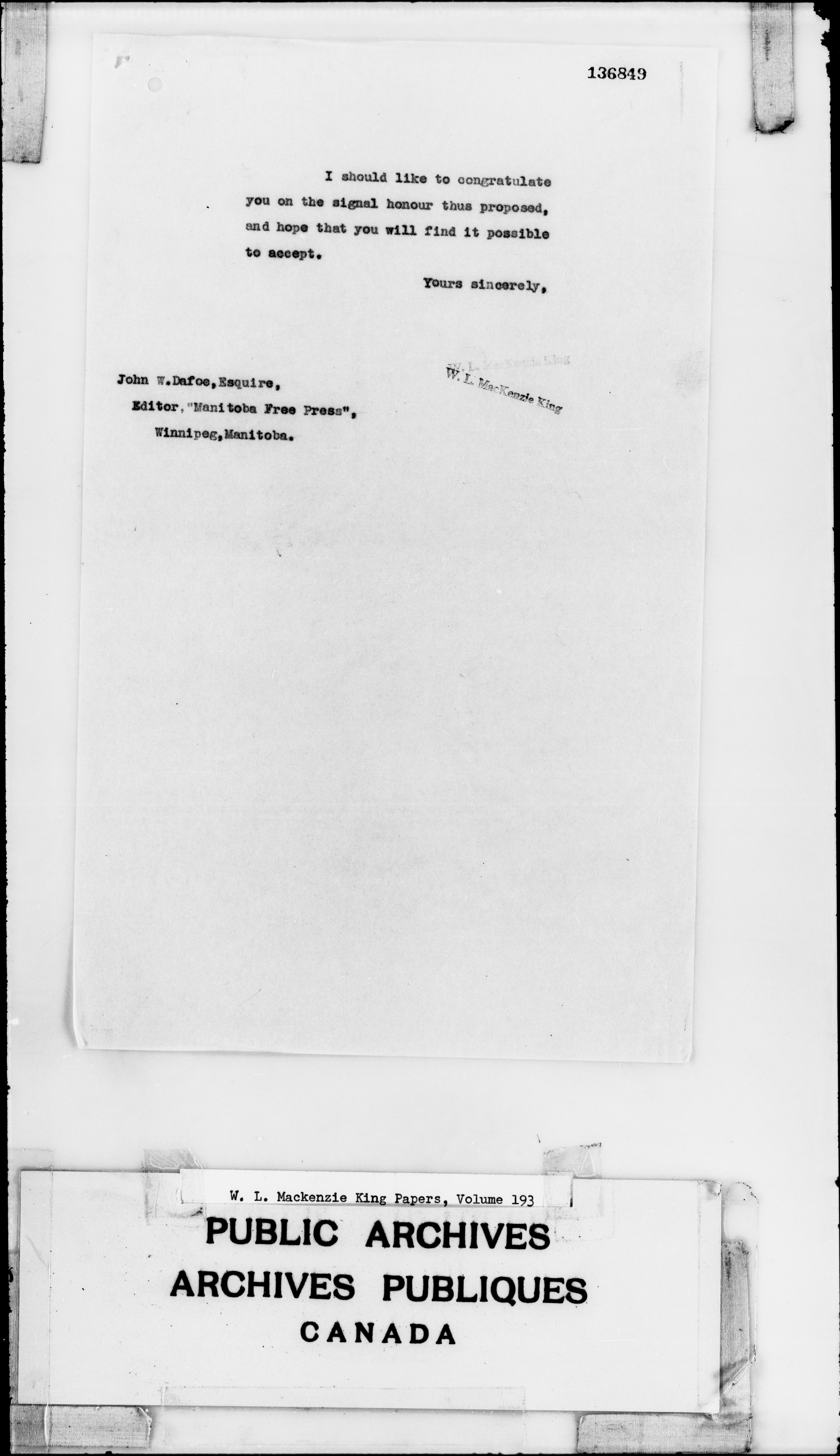 William Lyon Mackenzie King : Primary series correspondence (J1) - 2309