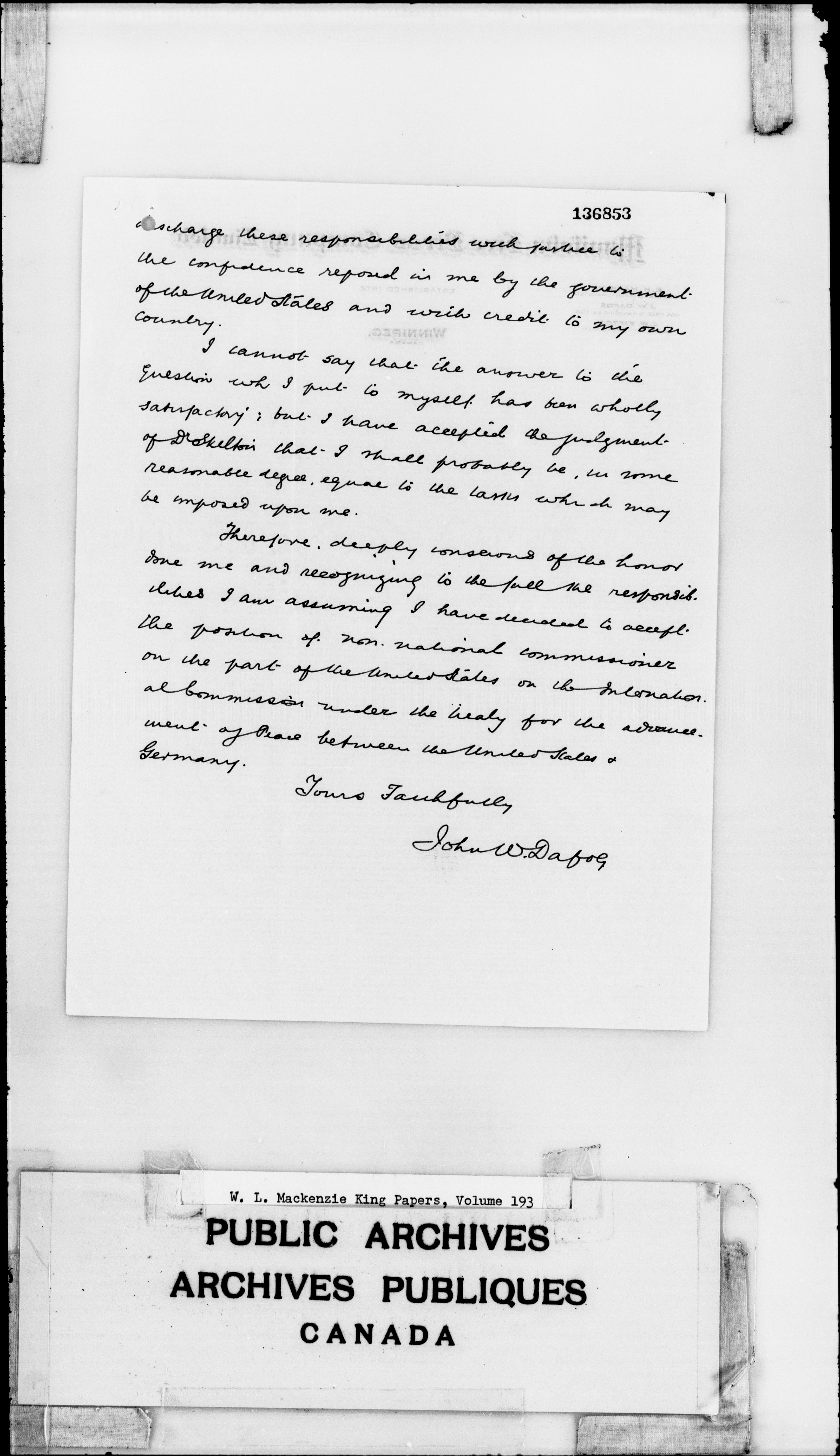 William Lyon Mackenzie King : Primary series correspondence (J1) - 2309