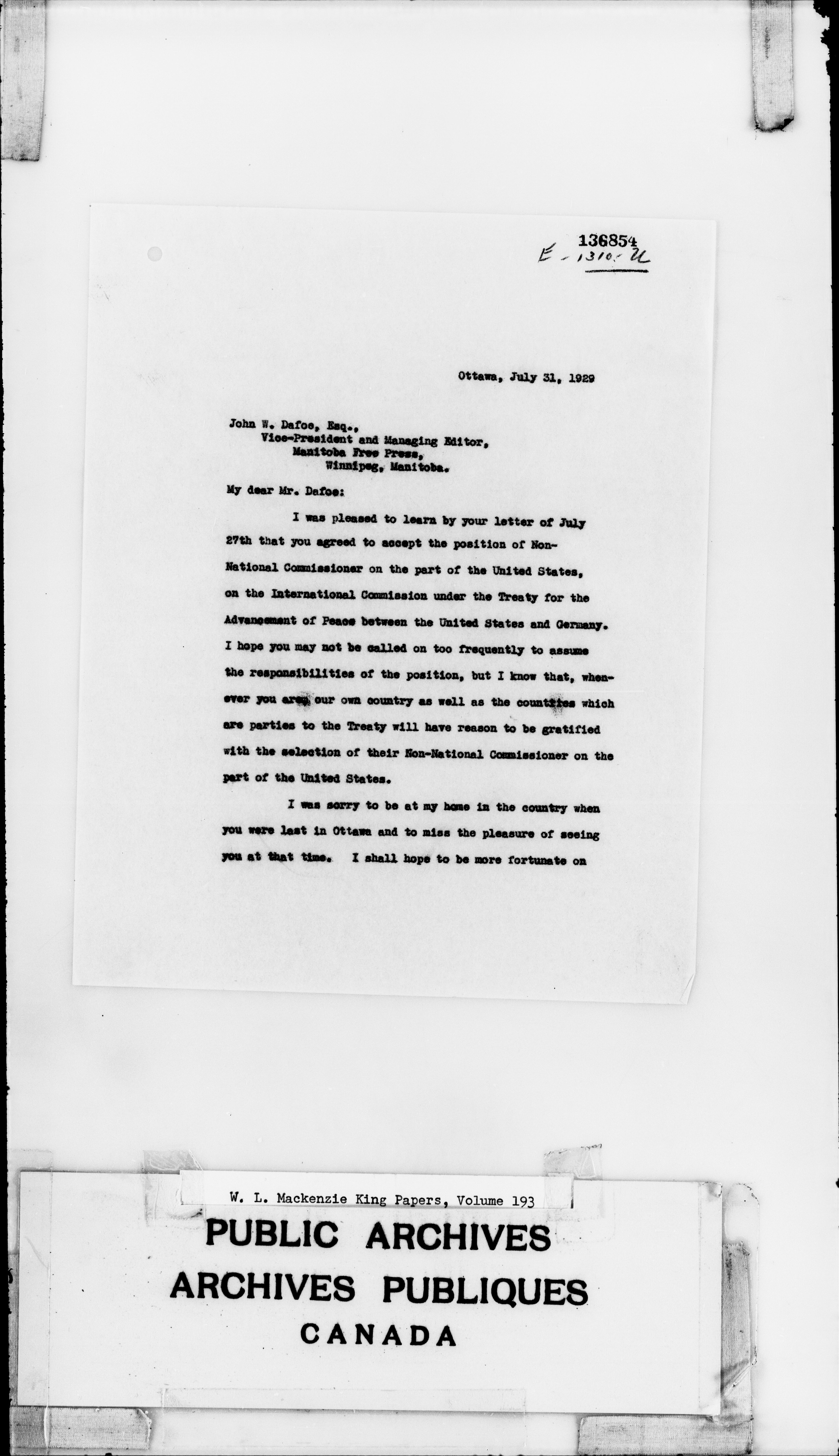 William Lyon Mackenzie King : Primary series correspondence (J1) - 2309