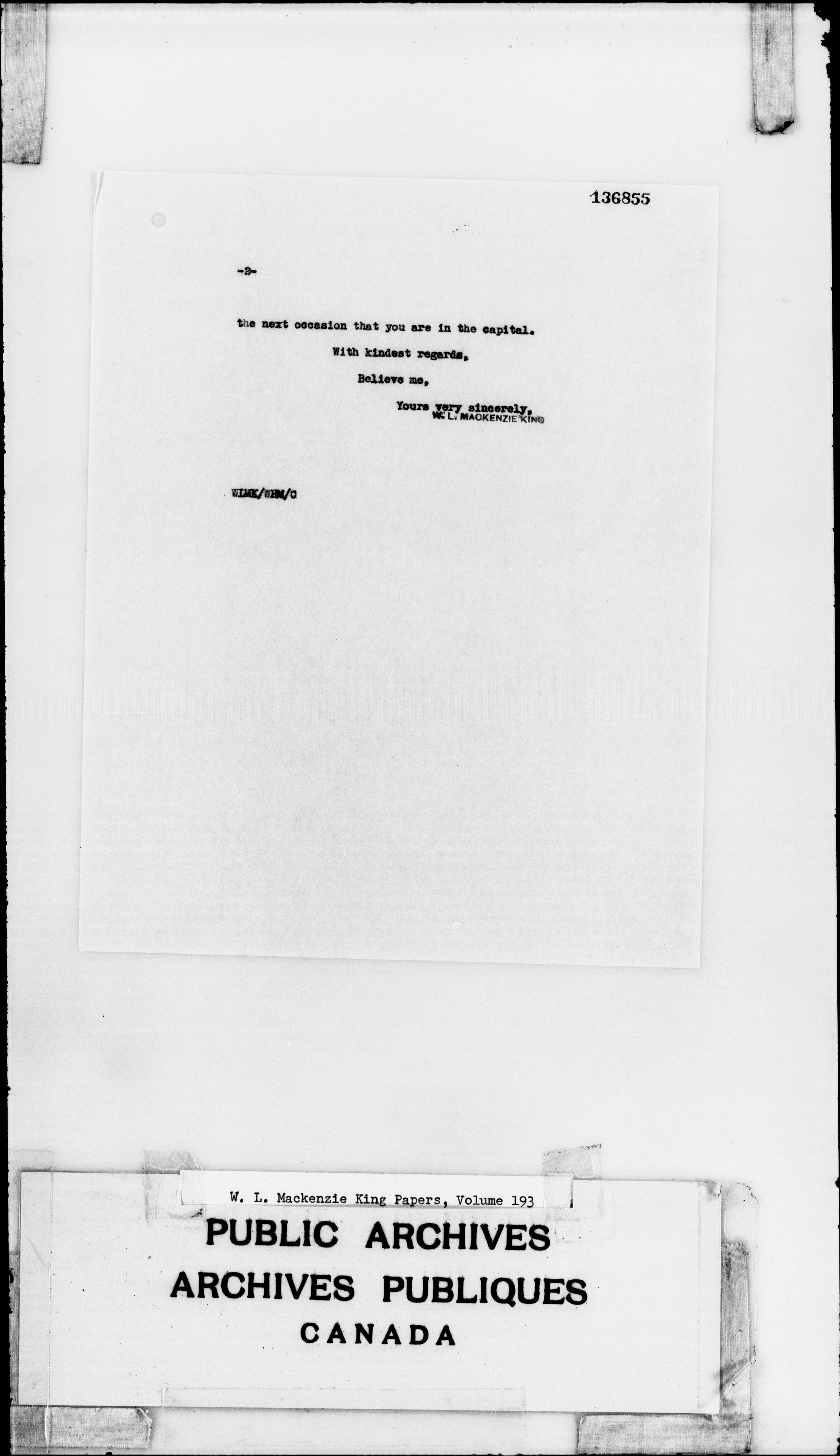 William Lyon Mackenzie King : Primary series correspondence (J1) - 2309