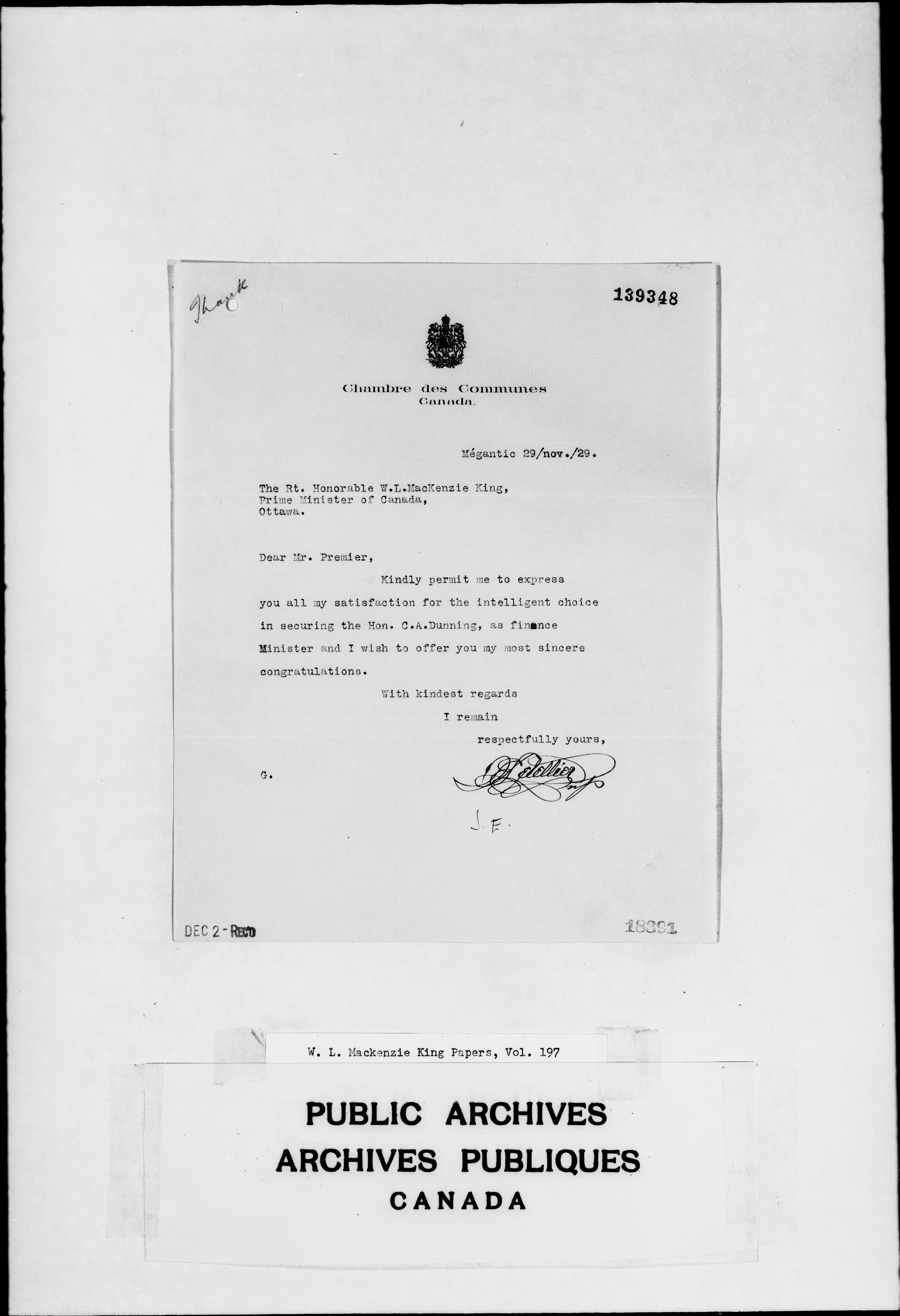 William Lyon Mackenzie King : Primary series correspondence (J1) - 2311