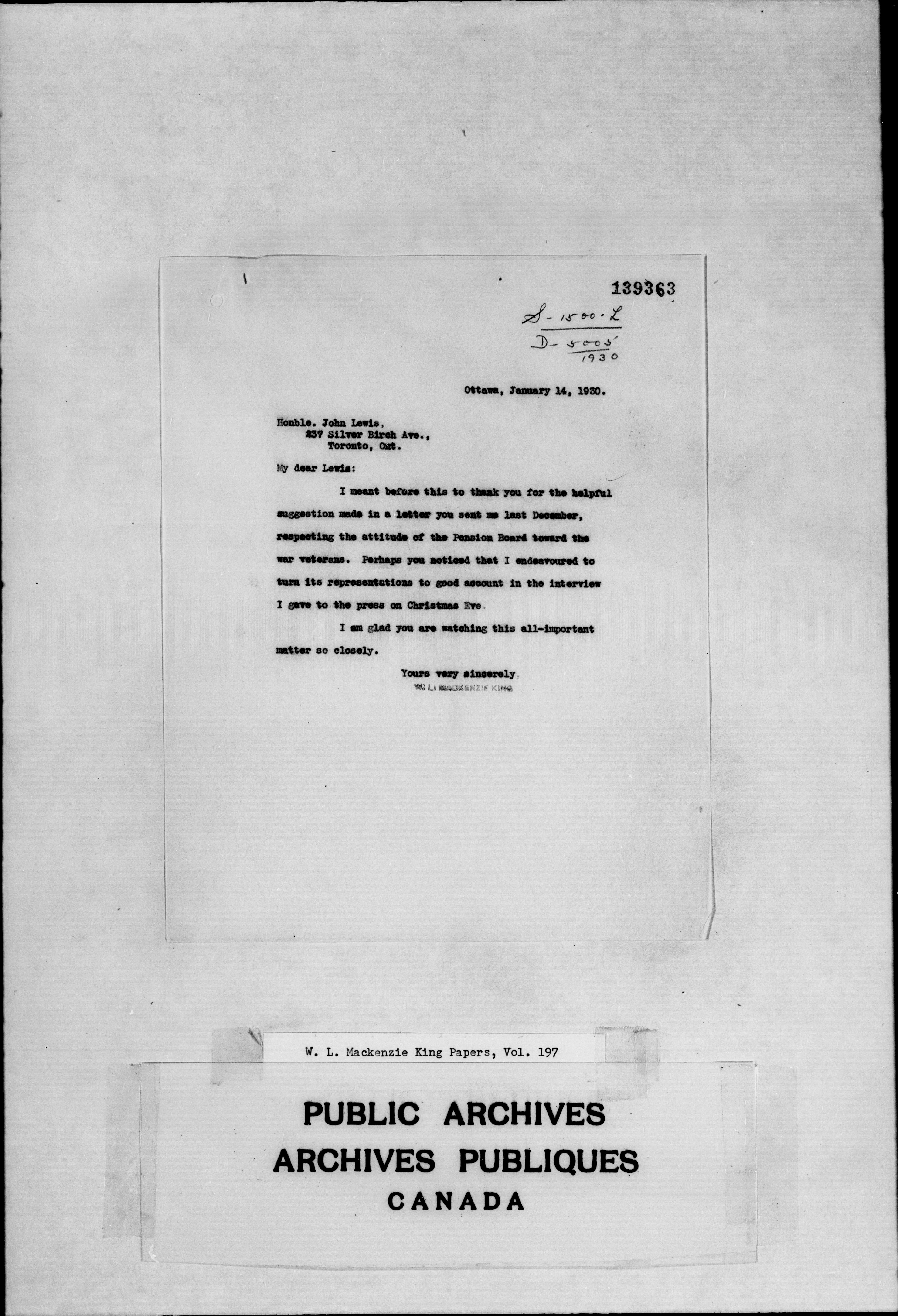 William Lyon Mackenzie King : Primary series correspondence (J1) - 2311