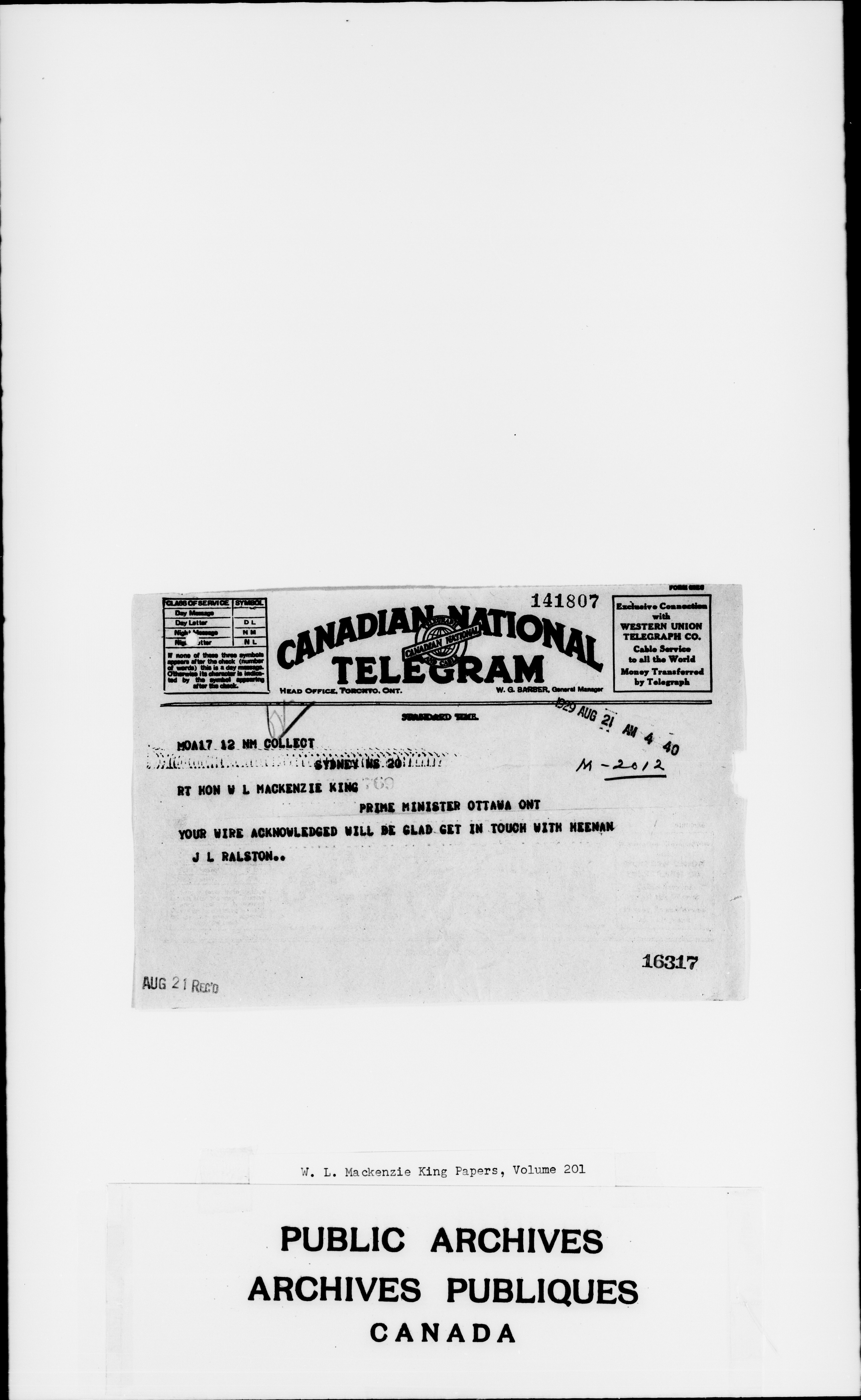 William Lyon Mackenzie King : Primary series correspondence (J1) - 2313