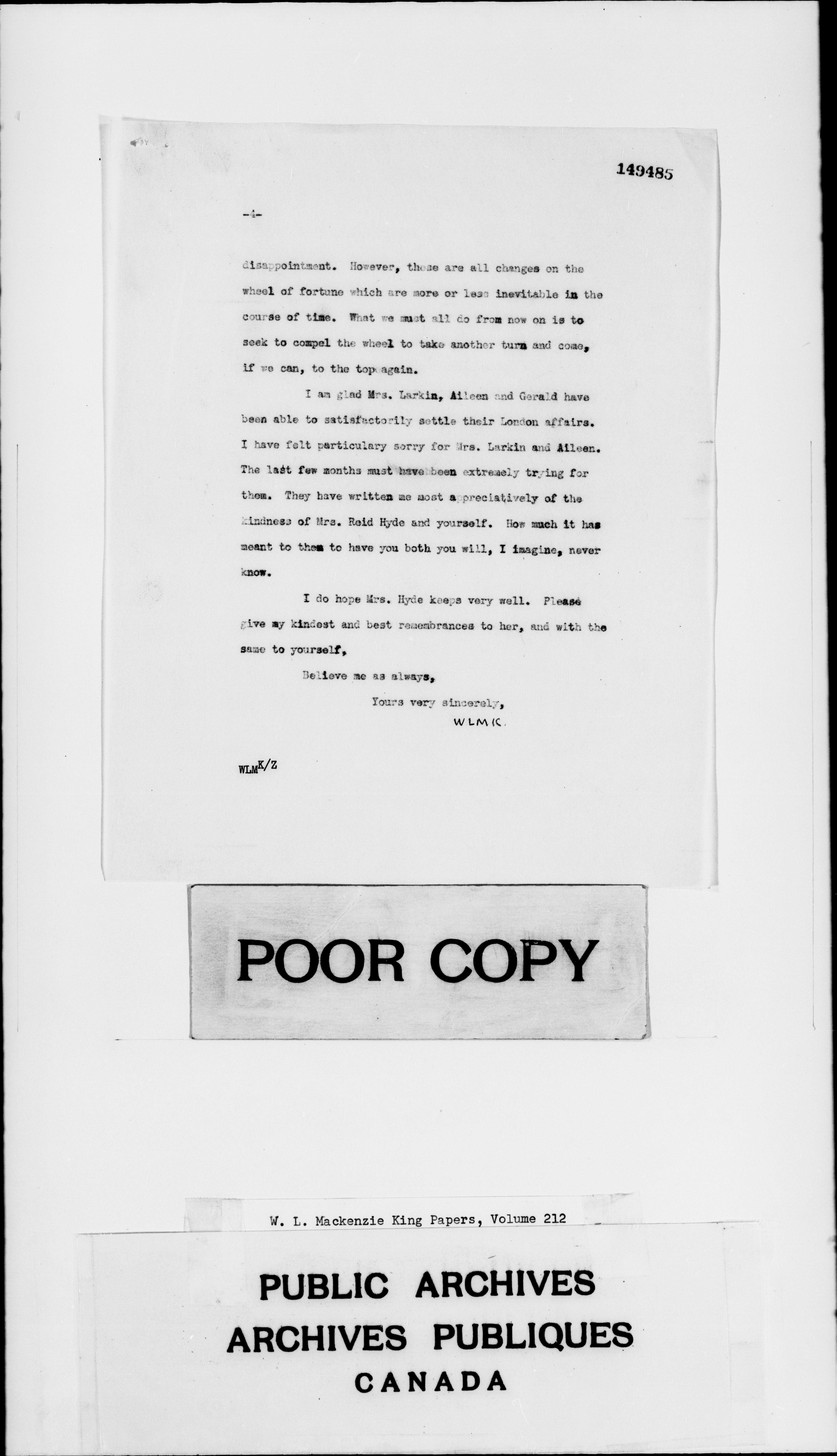 William Lyon Mackenzie King : Primary series correspondence (J1) - 2318