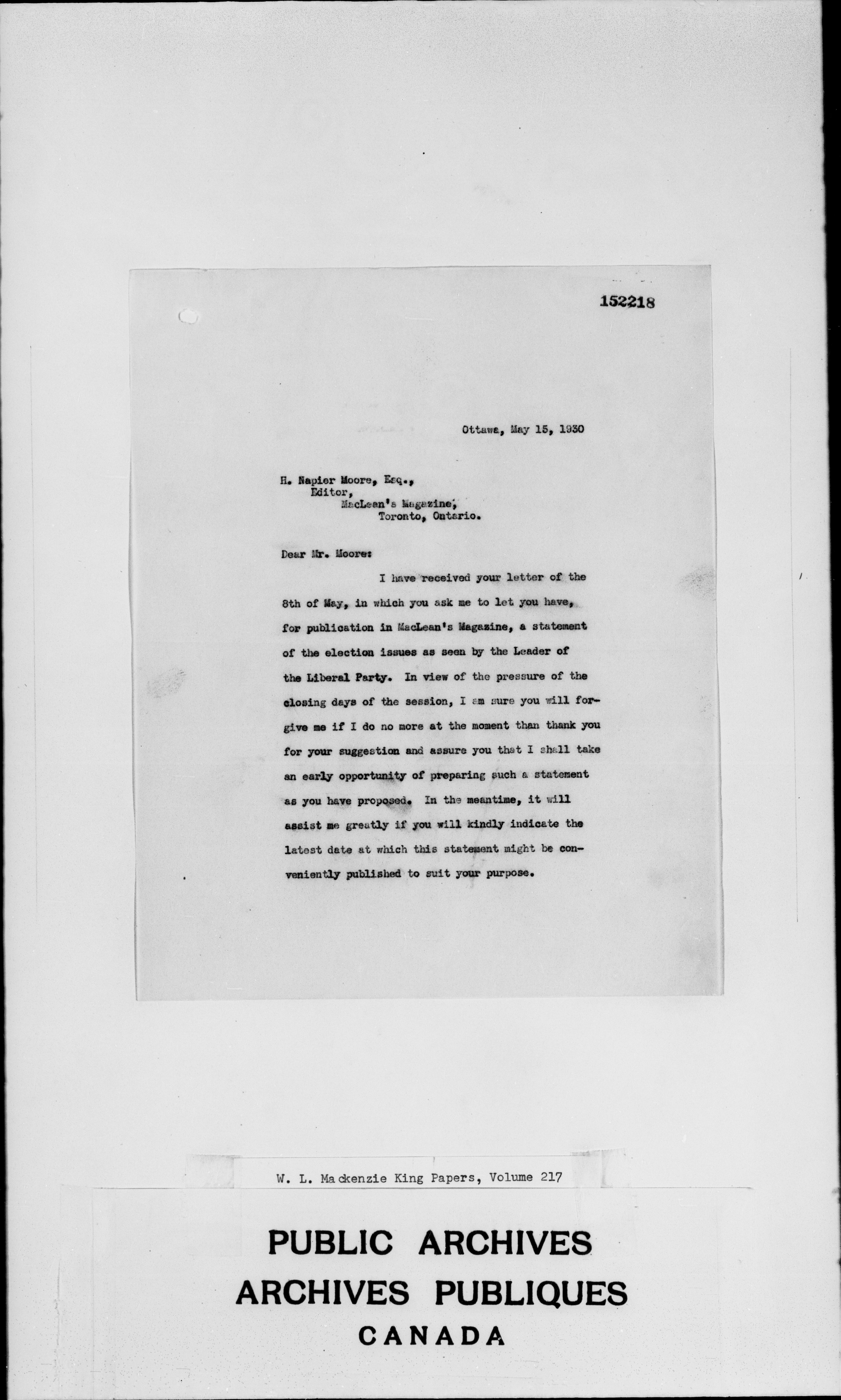 William Lyon Mackenzie King : Primary series correspondence (J1) : C-2321