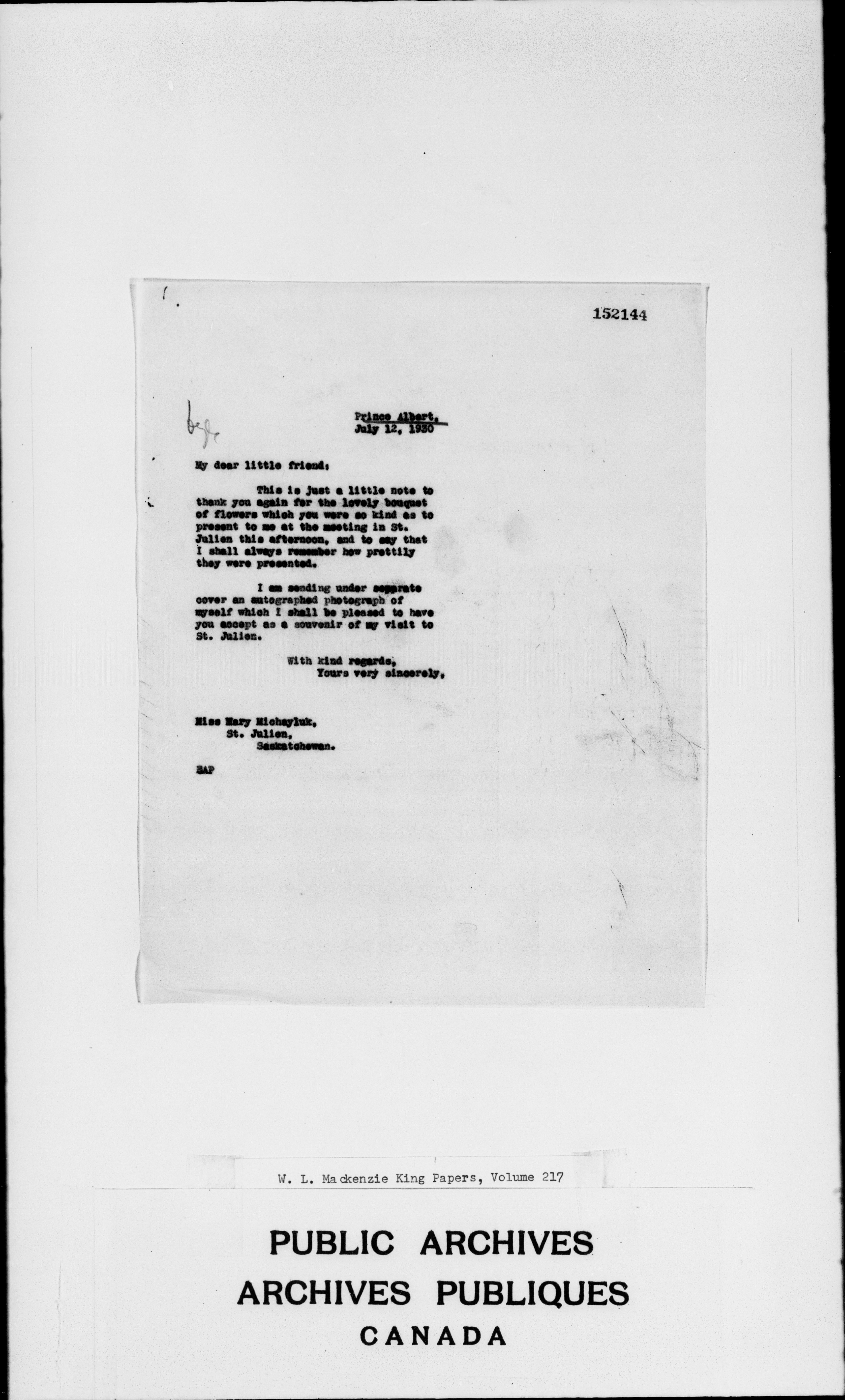 William Lyon Mackenzie King : Primary series correspondence (J1) : C-2321