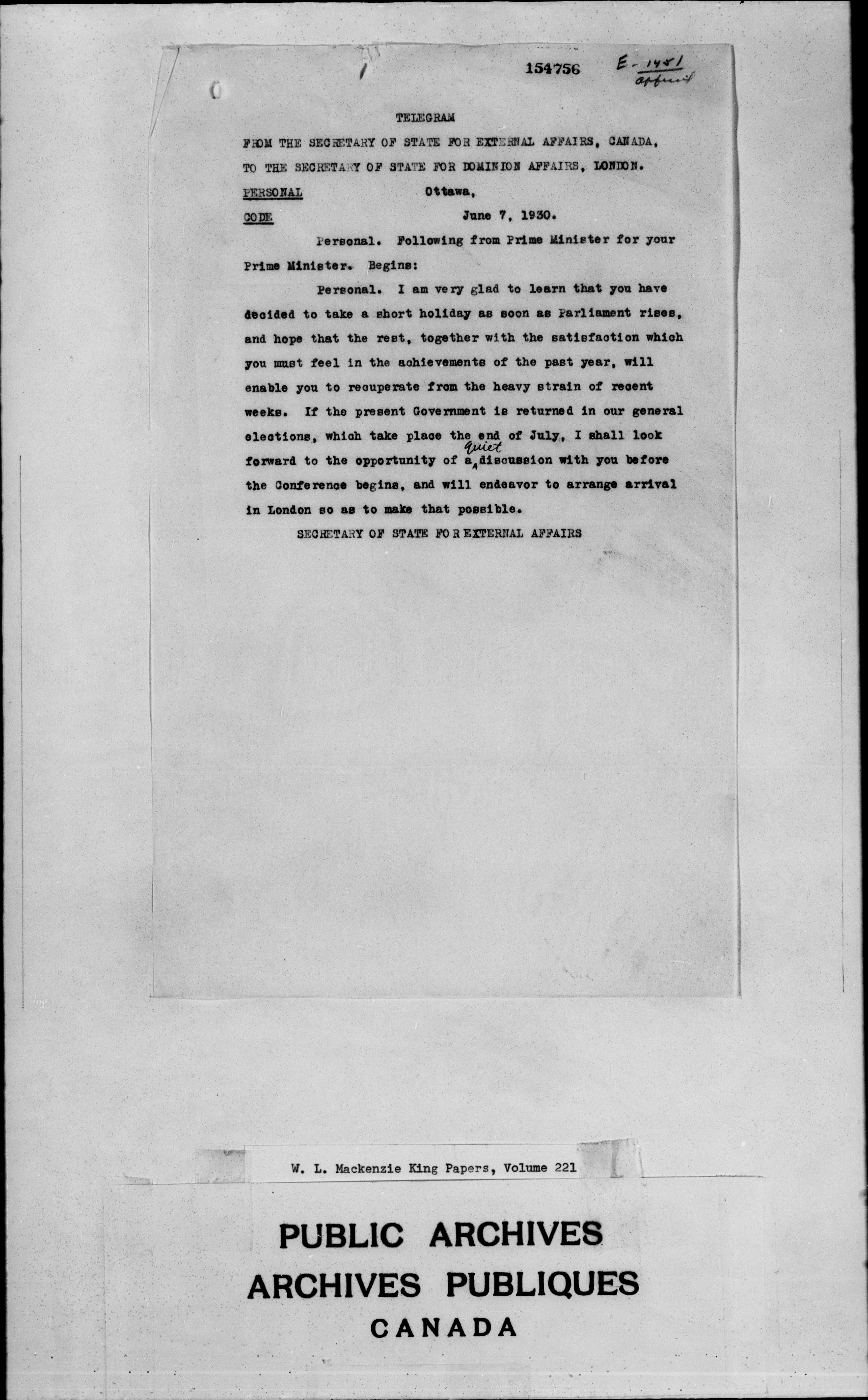 William Lyon Mackenzie King : Primary series correspondence (J1) - 2323