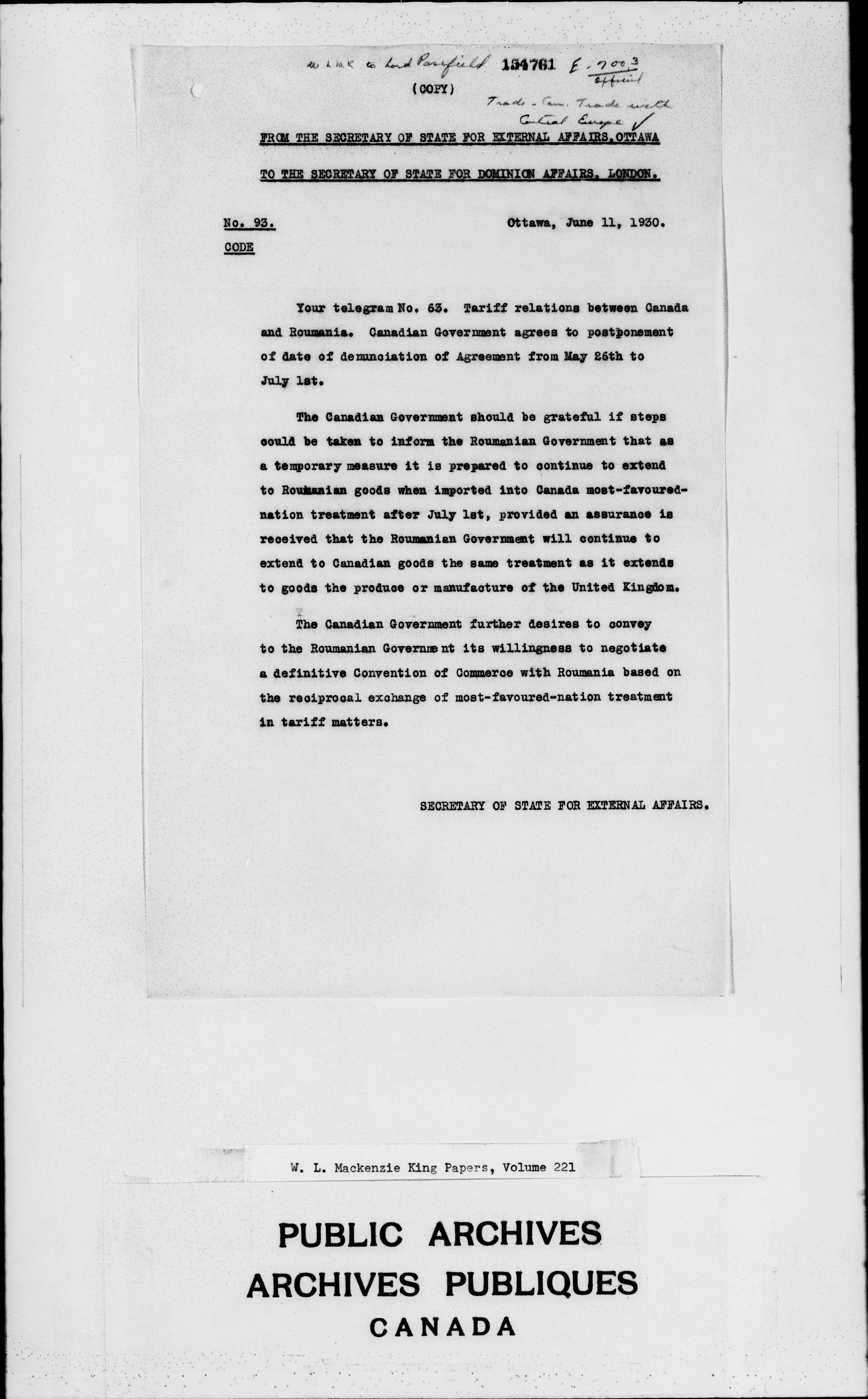 William Lyon Mackenzie King : Primary series correspondence (J1) - 2323