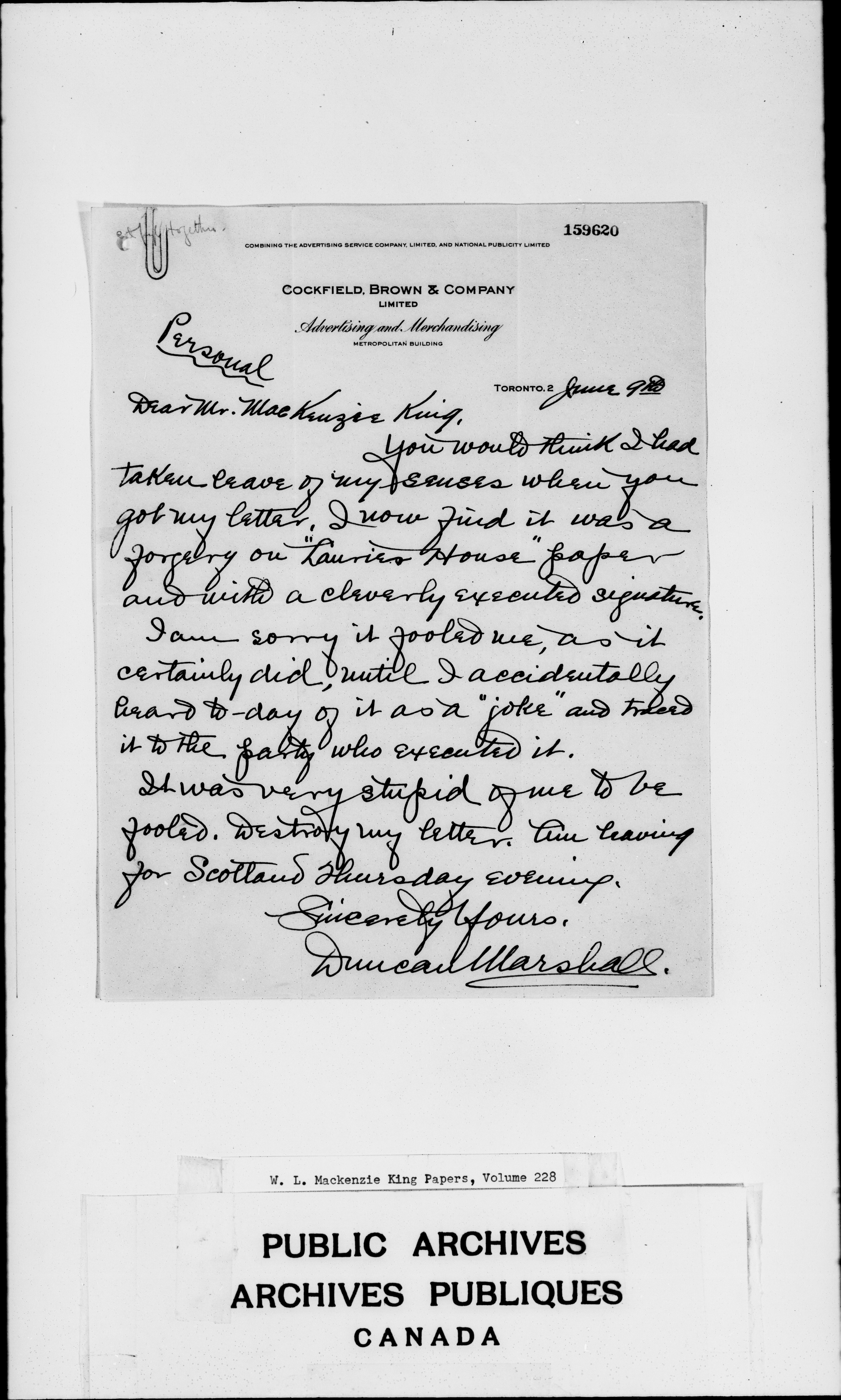 William Lyon Mackenzie King : Primary series correspondence (J1) : C-2326
