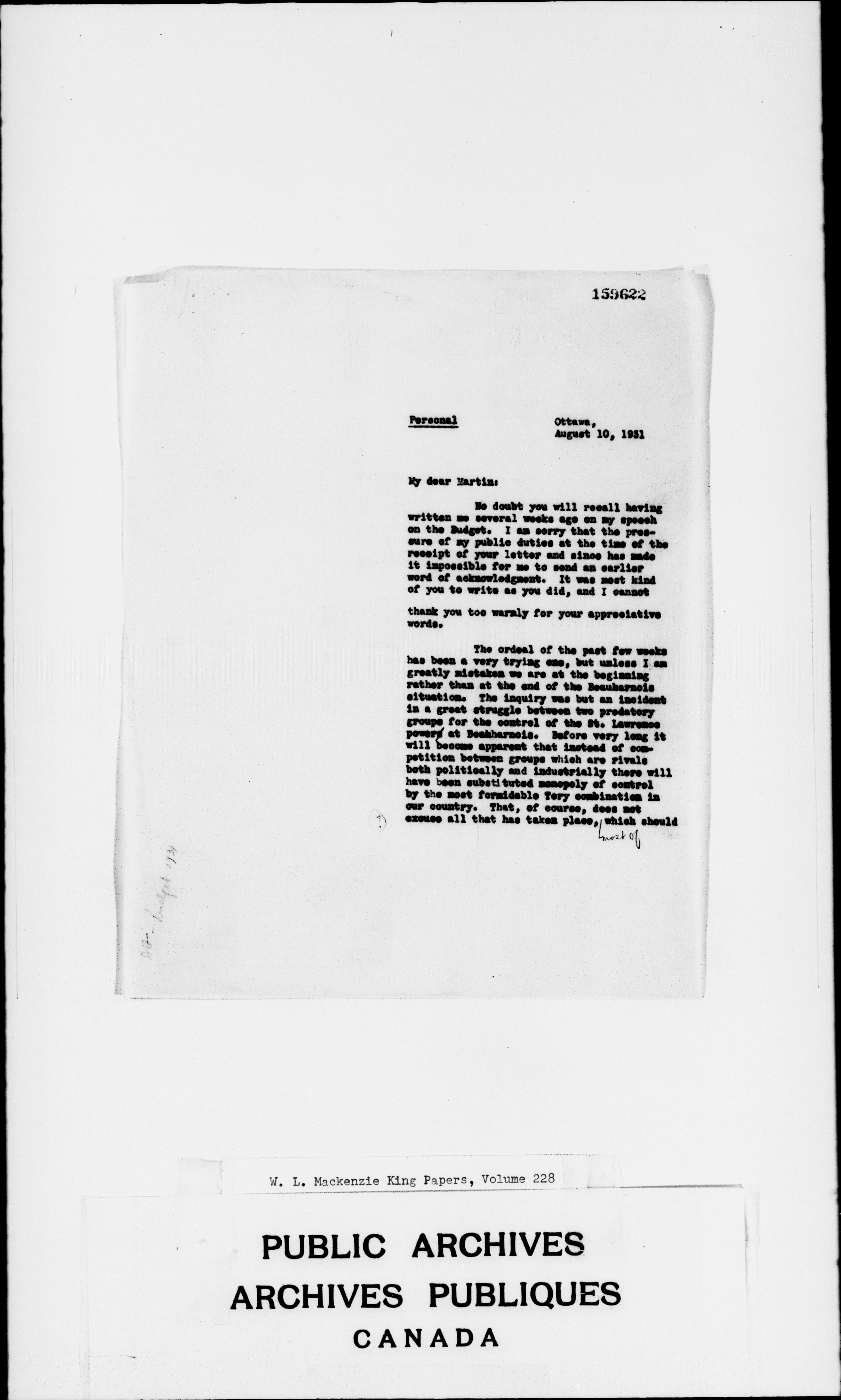 William Lyon Mackenzie King : Primary series correspondence (J1) - 2326