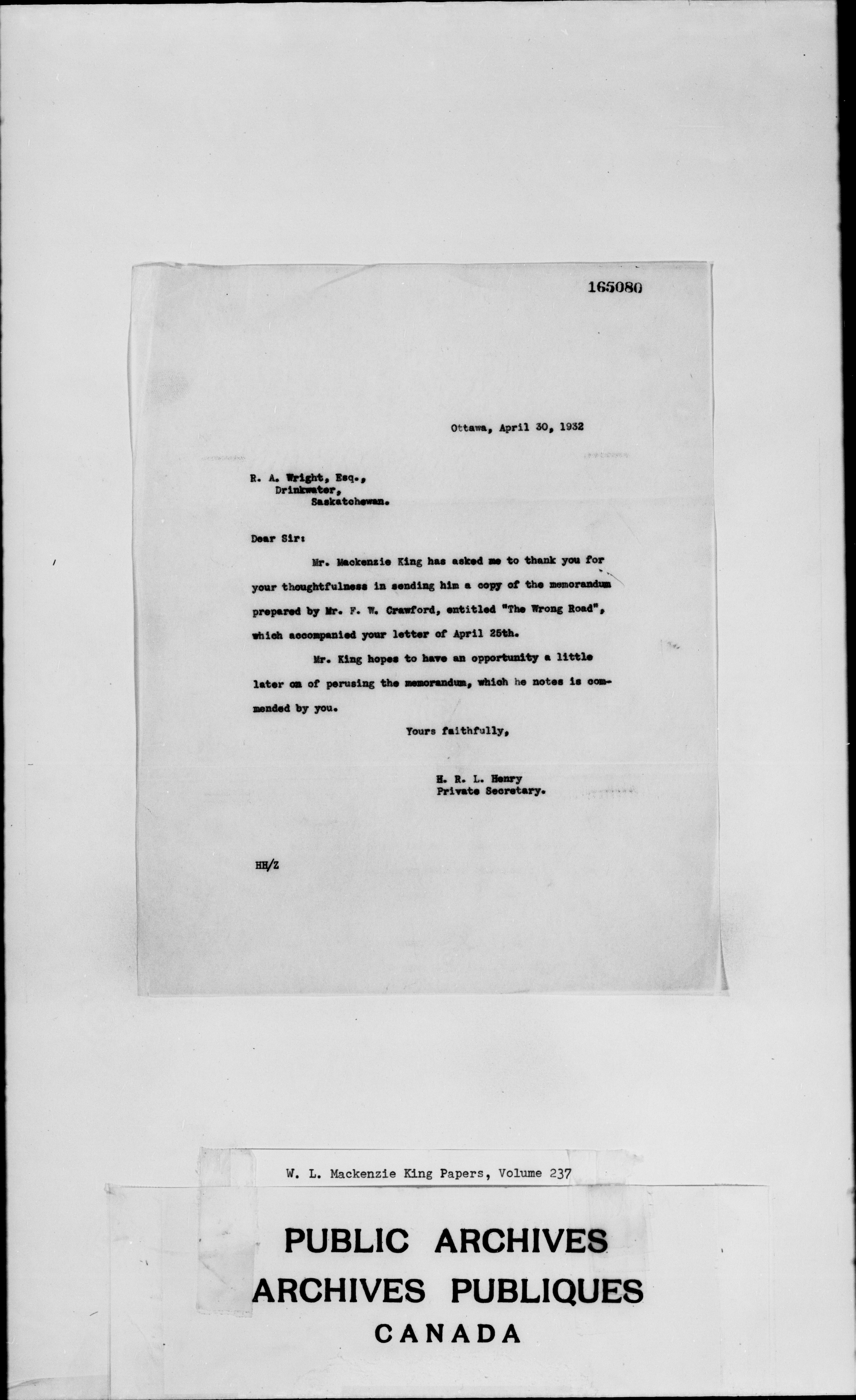 William Lyon Mackenzie King : Primary series correspondence (J1) : C-2331