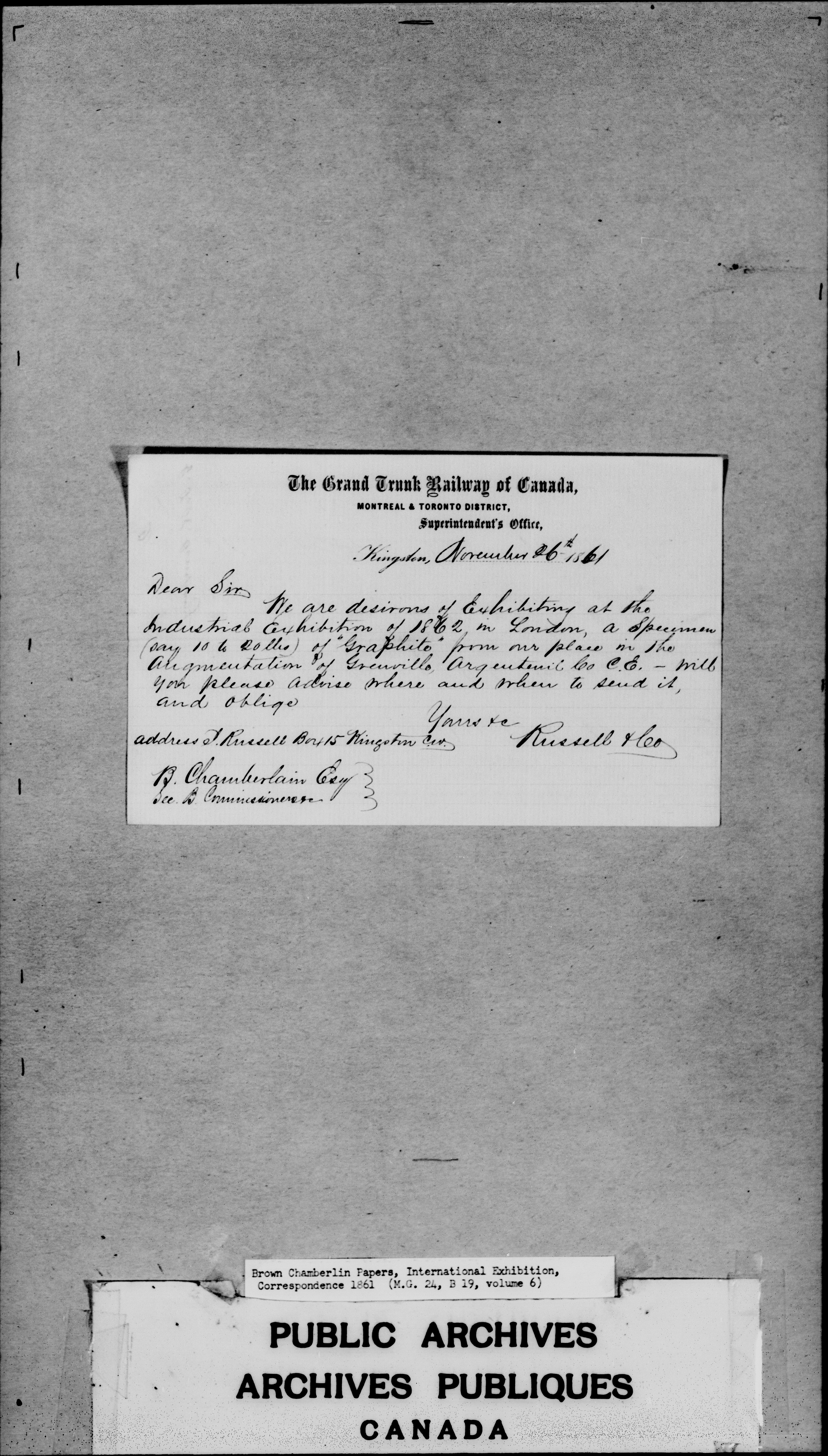 Chamberlin Brown : International Exhibition Correspondence - 2333