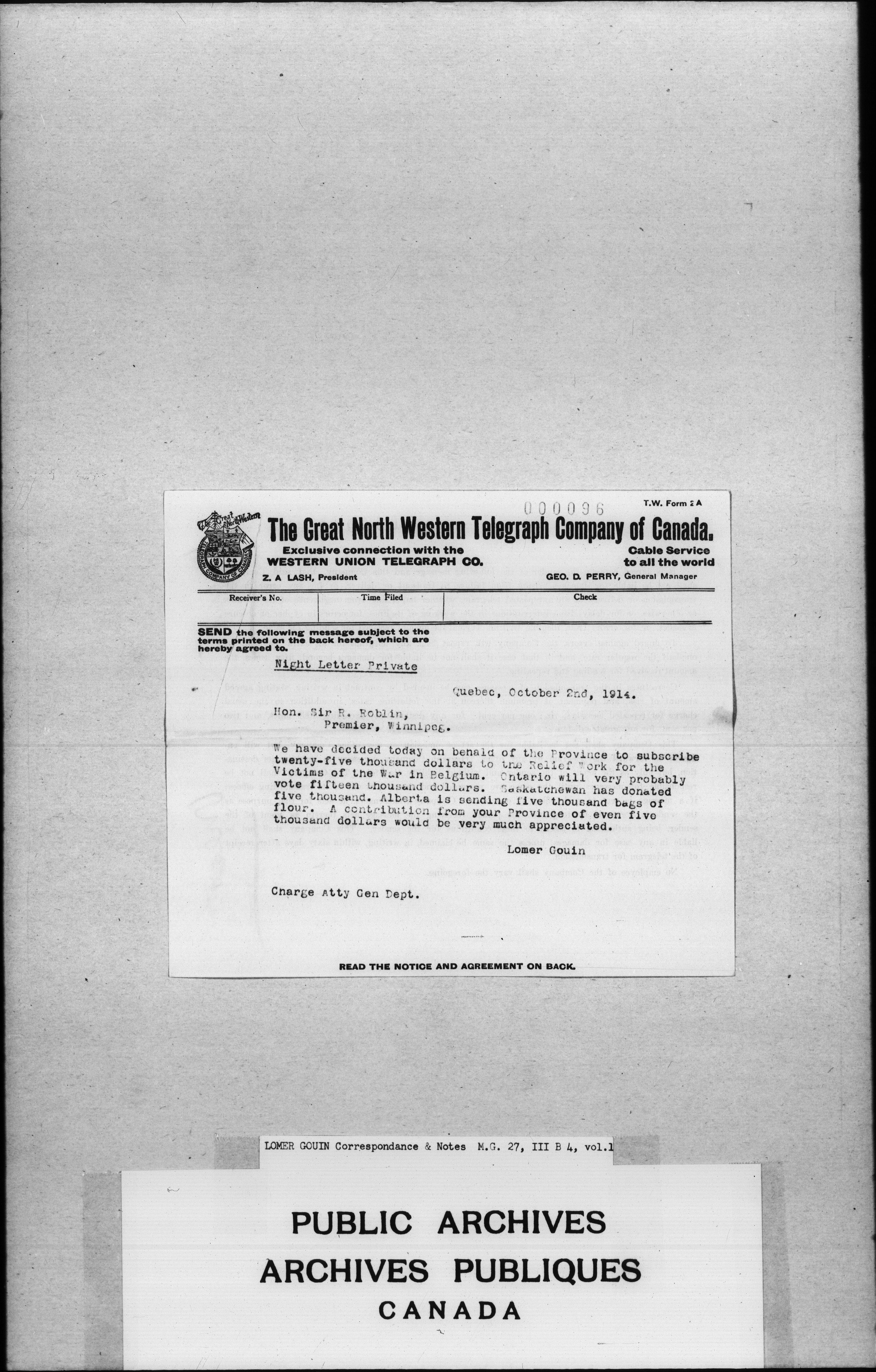 Sir Lomer Gouin : Correspondence and Notes - 2335