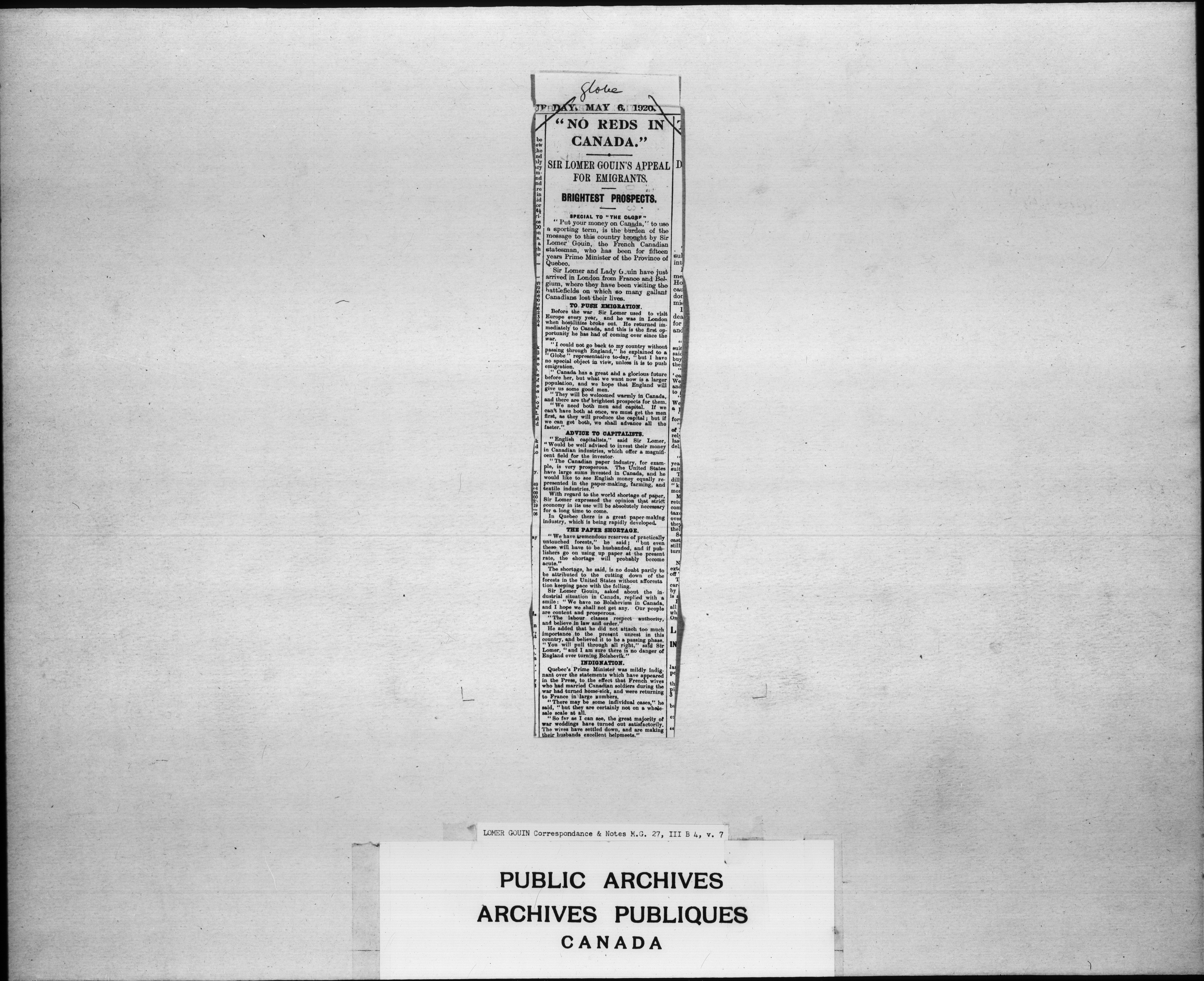 Sir Lomer Gouin : Correspondence and Notes - 2338