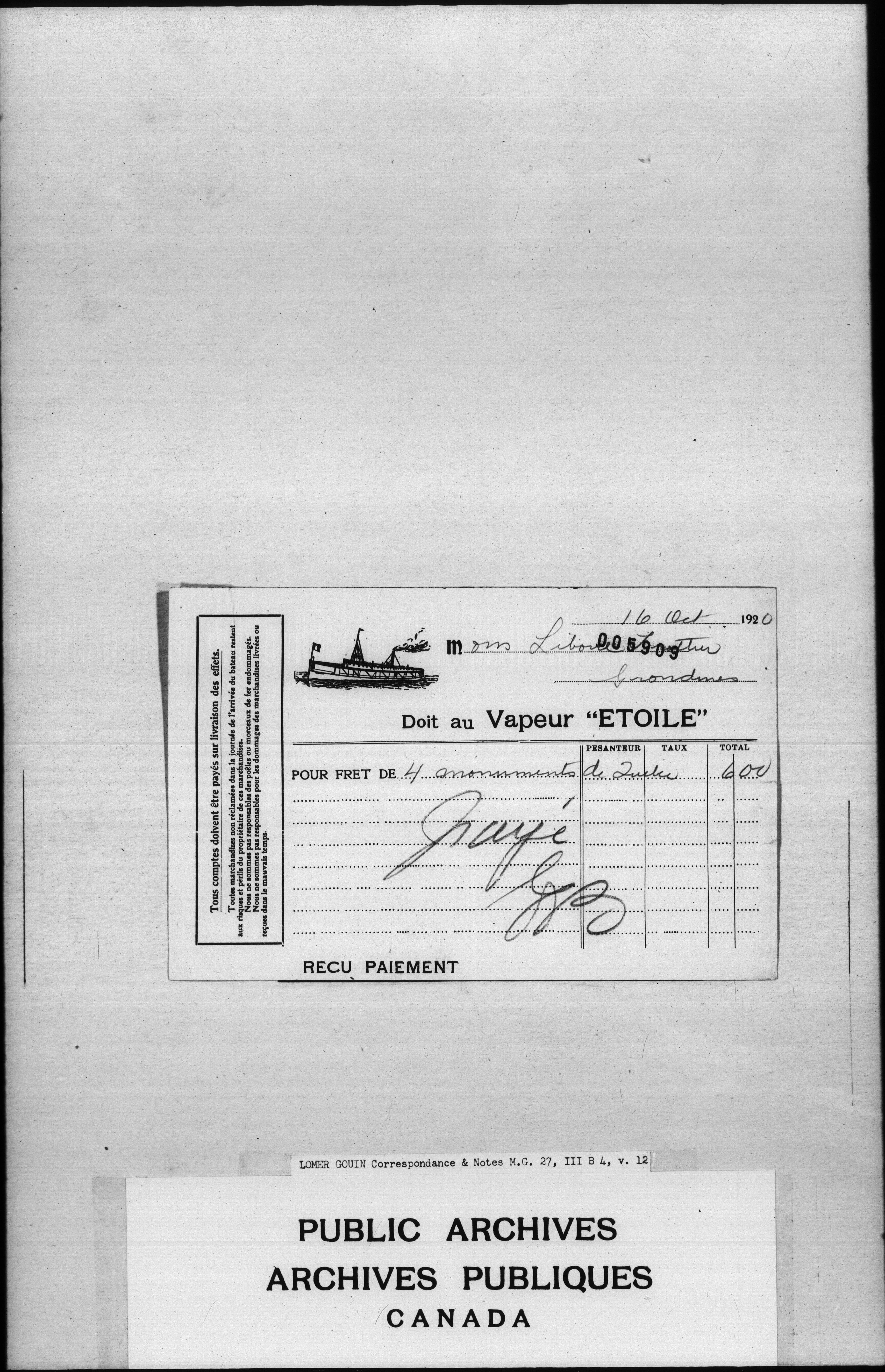 Sir Lomer Gouin : Correspondence and Notes - 2339