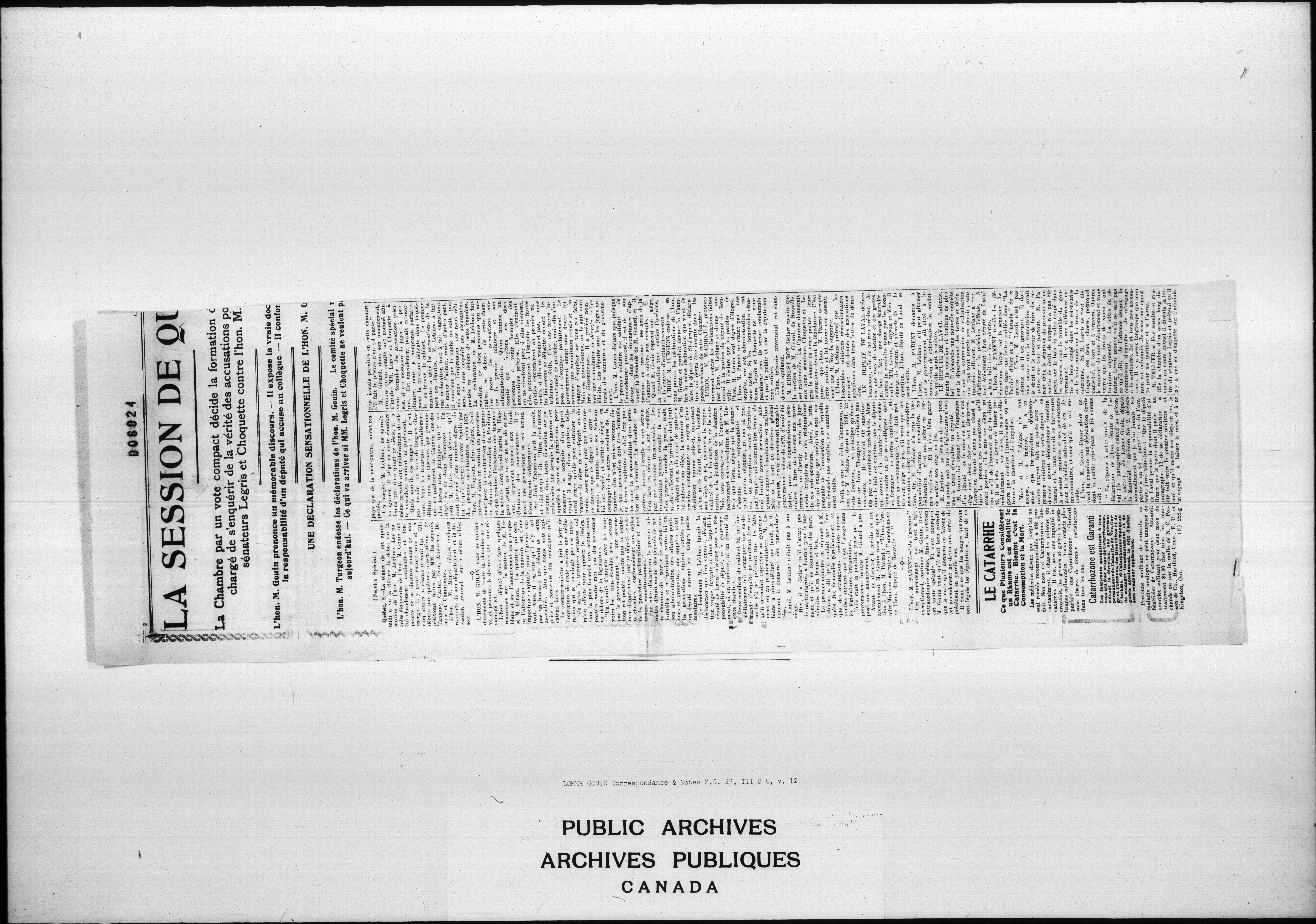 Sir Lomer Gouin : Correspondence and Notes - 2340