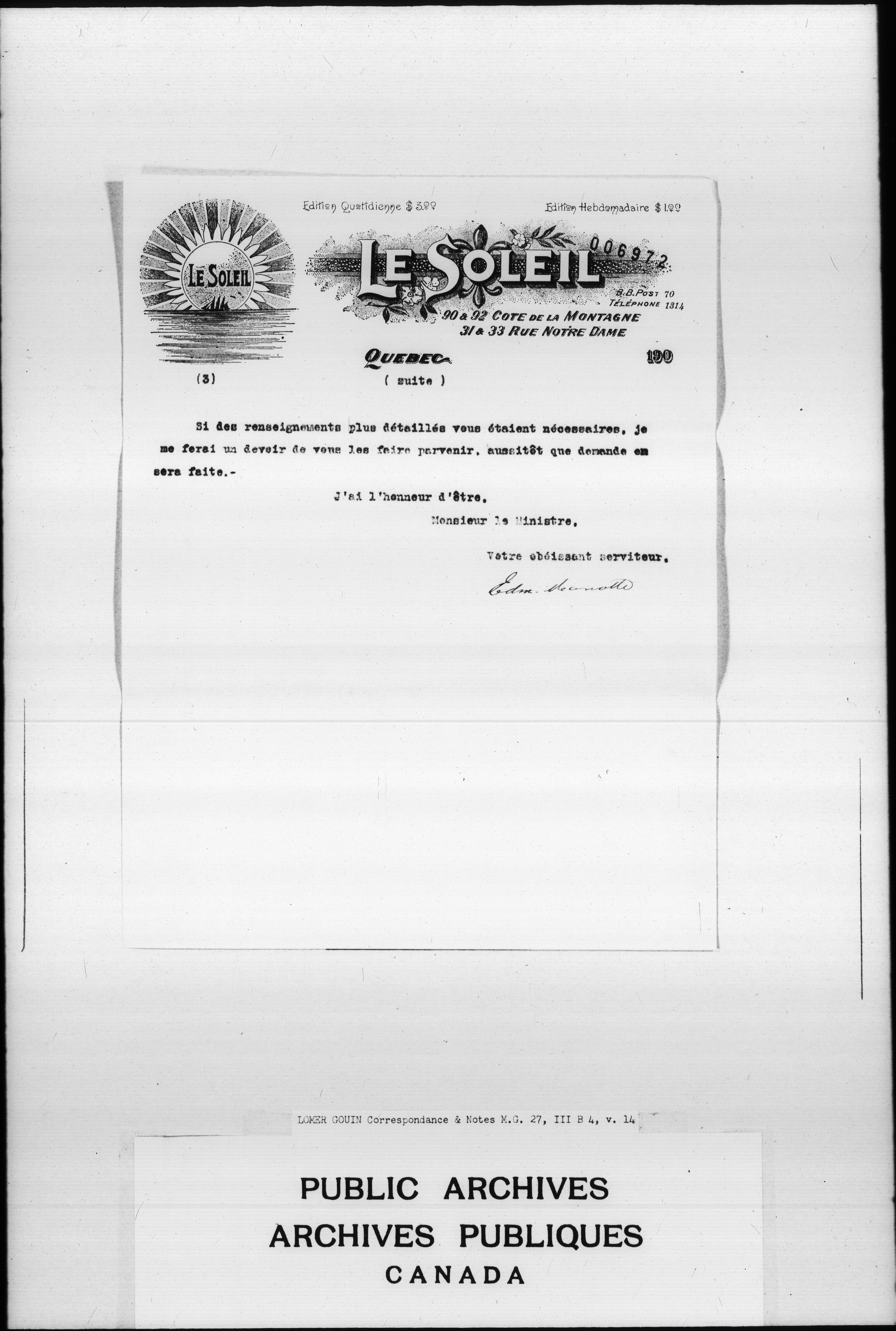 Sir Lomer Gouin : Correspondence and Notes - 2340