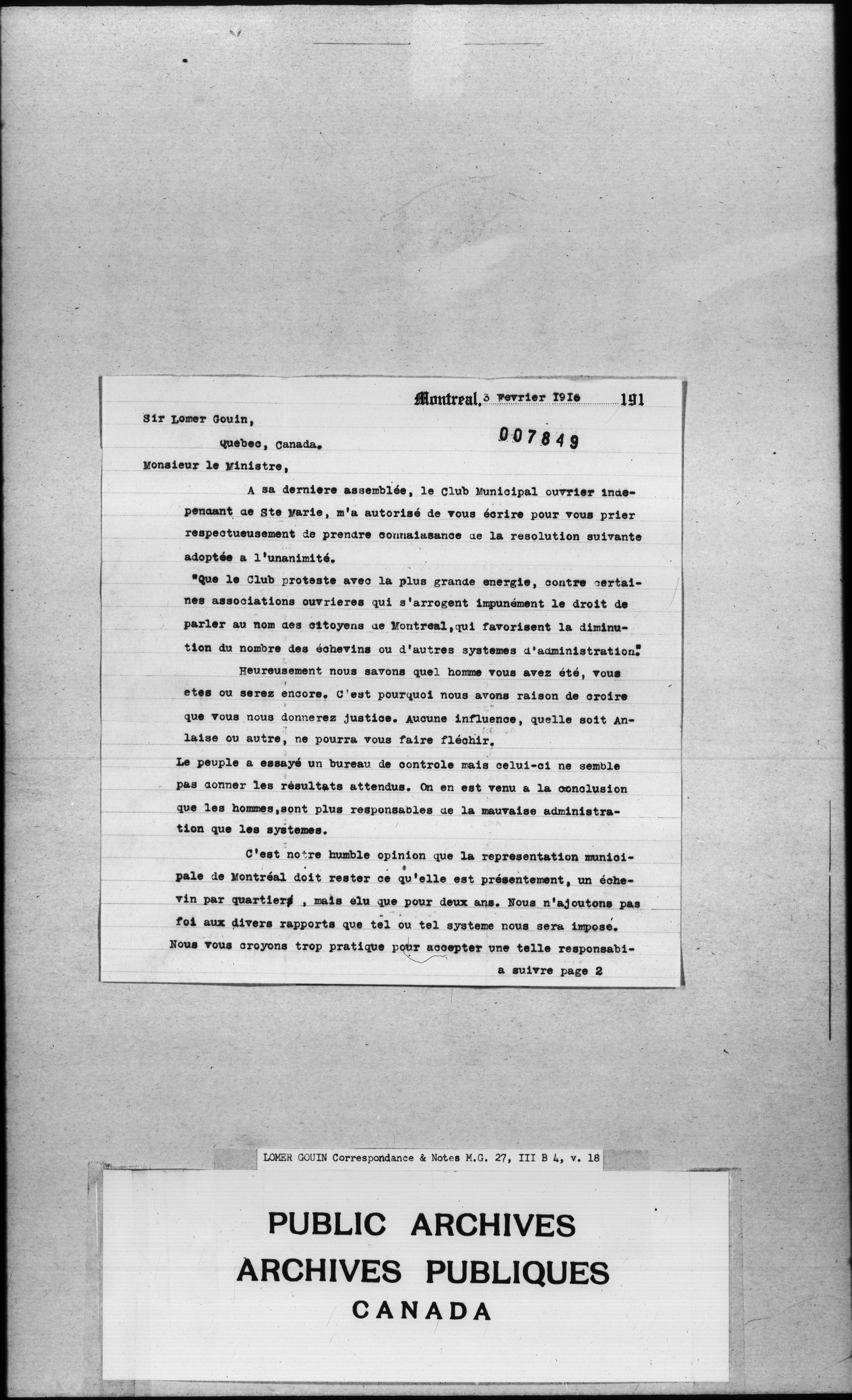 Sir Lomer Gouin : Correspondence and Notes - 2341