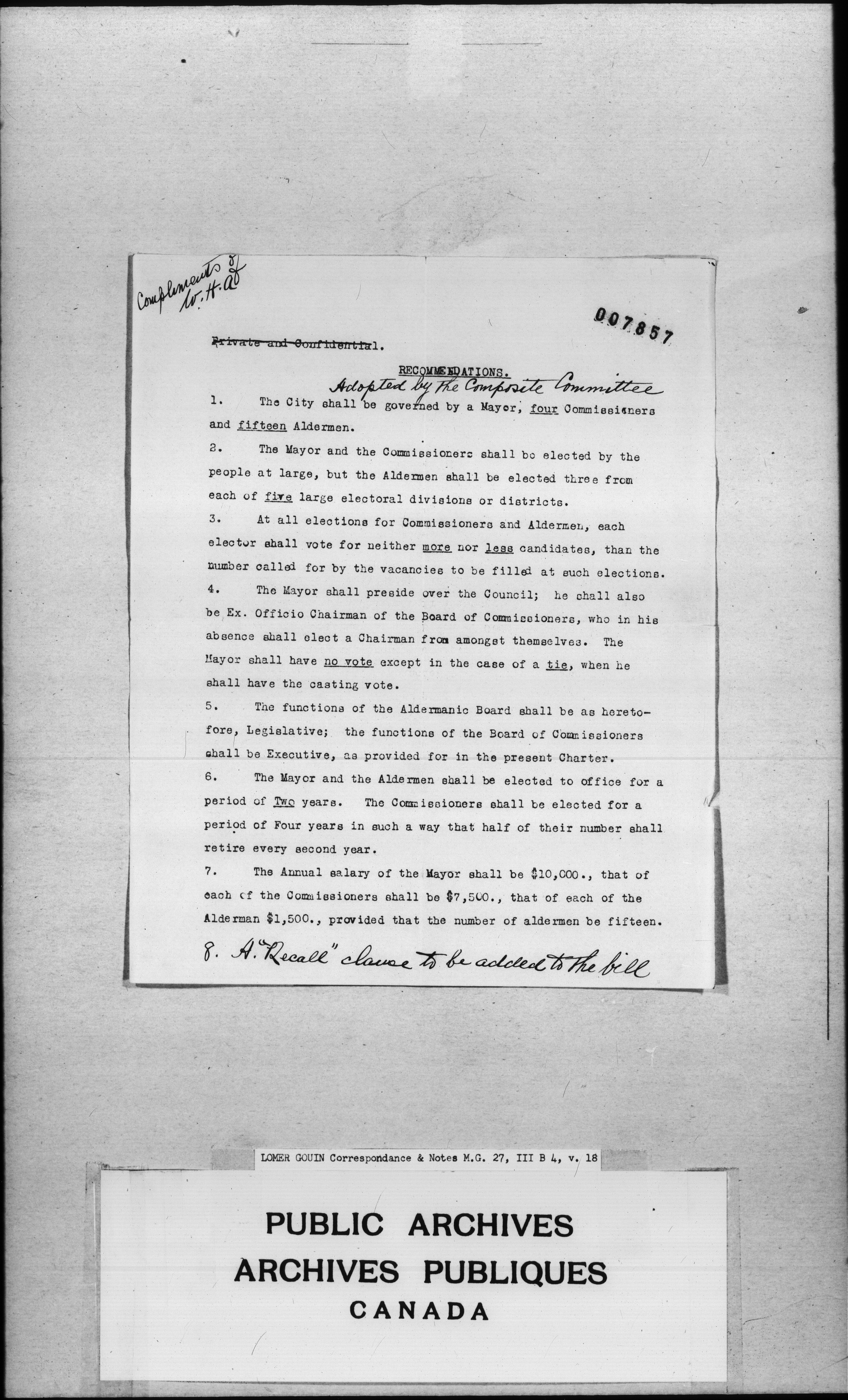 Sir Lomer Gouin : Correspondence and Notes - 2341