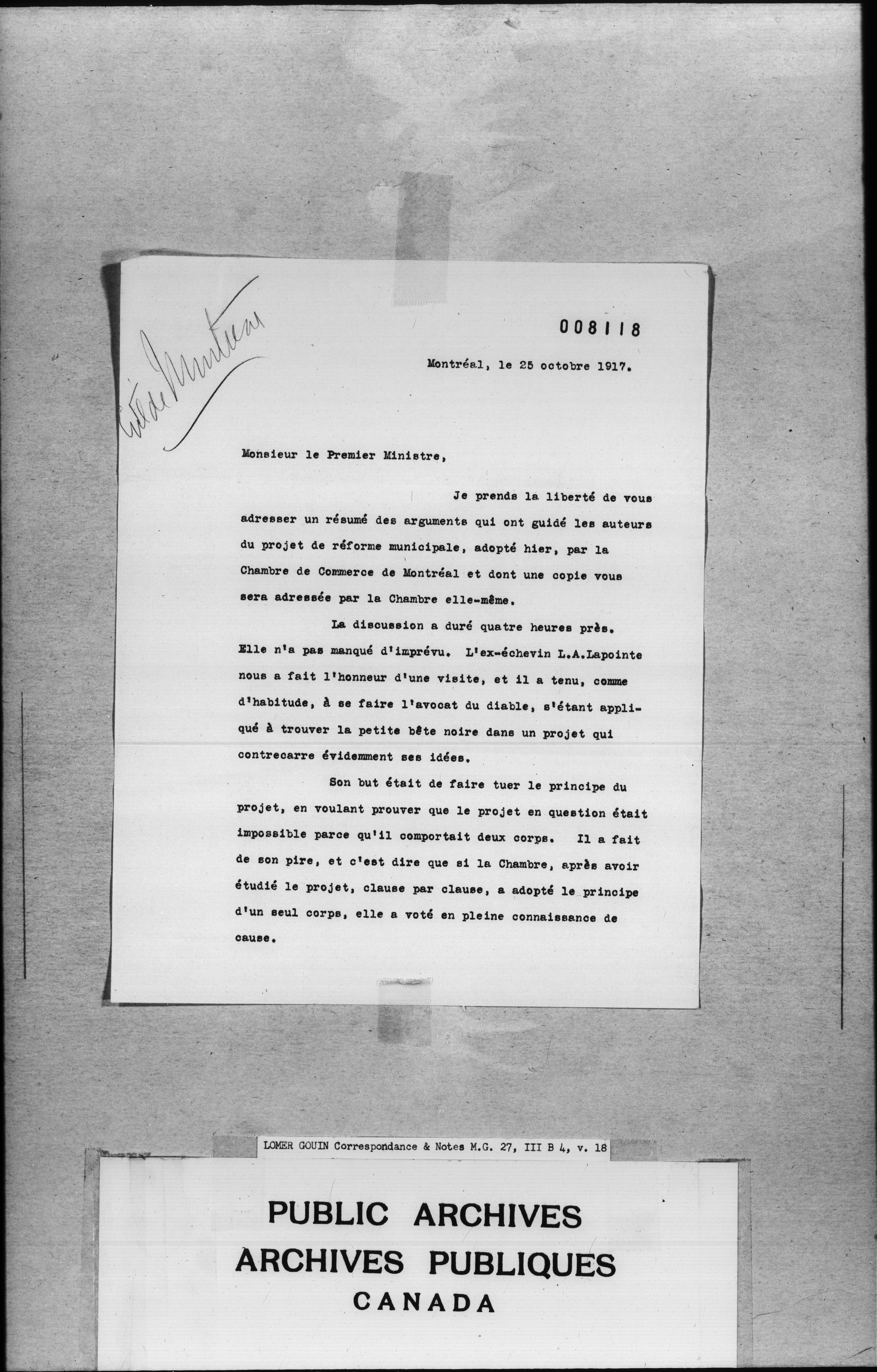 Sir Lomer Gouin : Correspondence and Notes - 2342