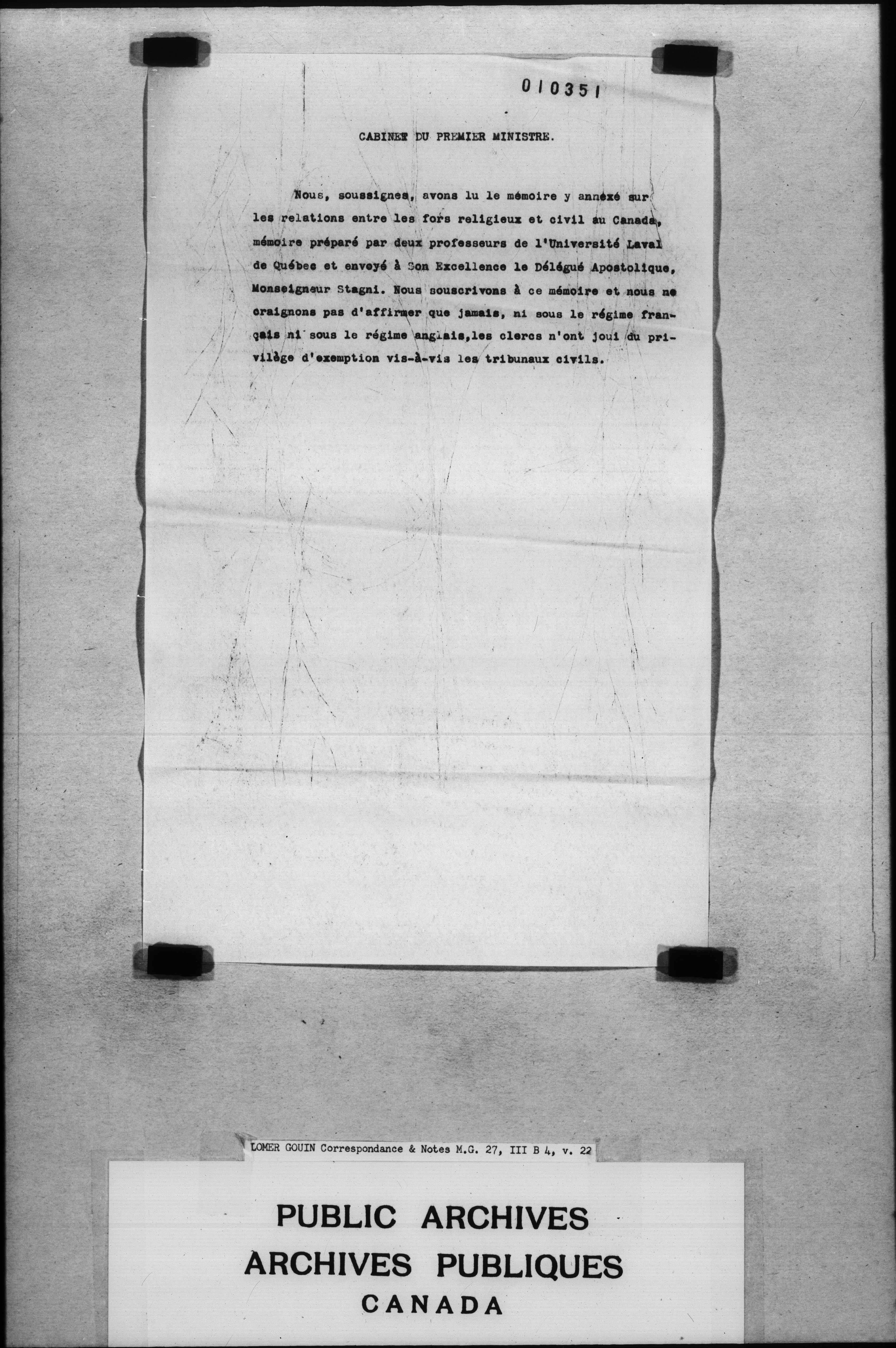 Sir Lomer Gouin : Correspondence and Notes - 2343
